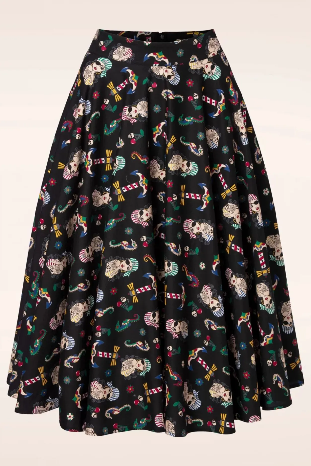 “Ahoy, Me Hearties!” Deze Anchor Pin Up Swing Skirt In Black Is Zo Leuk! Deze Beauty Draag Je Hoog In De Taille Vanwaar Zij Uitloopt In Een Vrolijke, Zwierige Swing Rok Voorzien Van Handige Zijwaartse Steekzakjes. Uitgevoerd In Een Luchtige, Zwarte Katoenmix (Stretcht Amper!) Met Een Kleurrijke Sailor Print. “Yo Ho Ho And A Bottle Of Fashion!” 😉