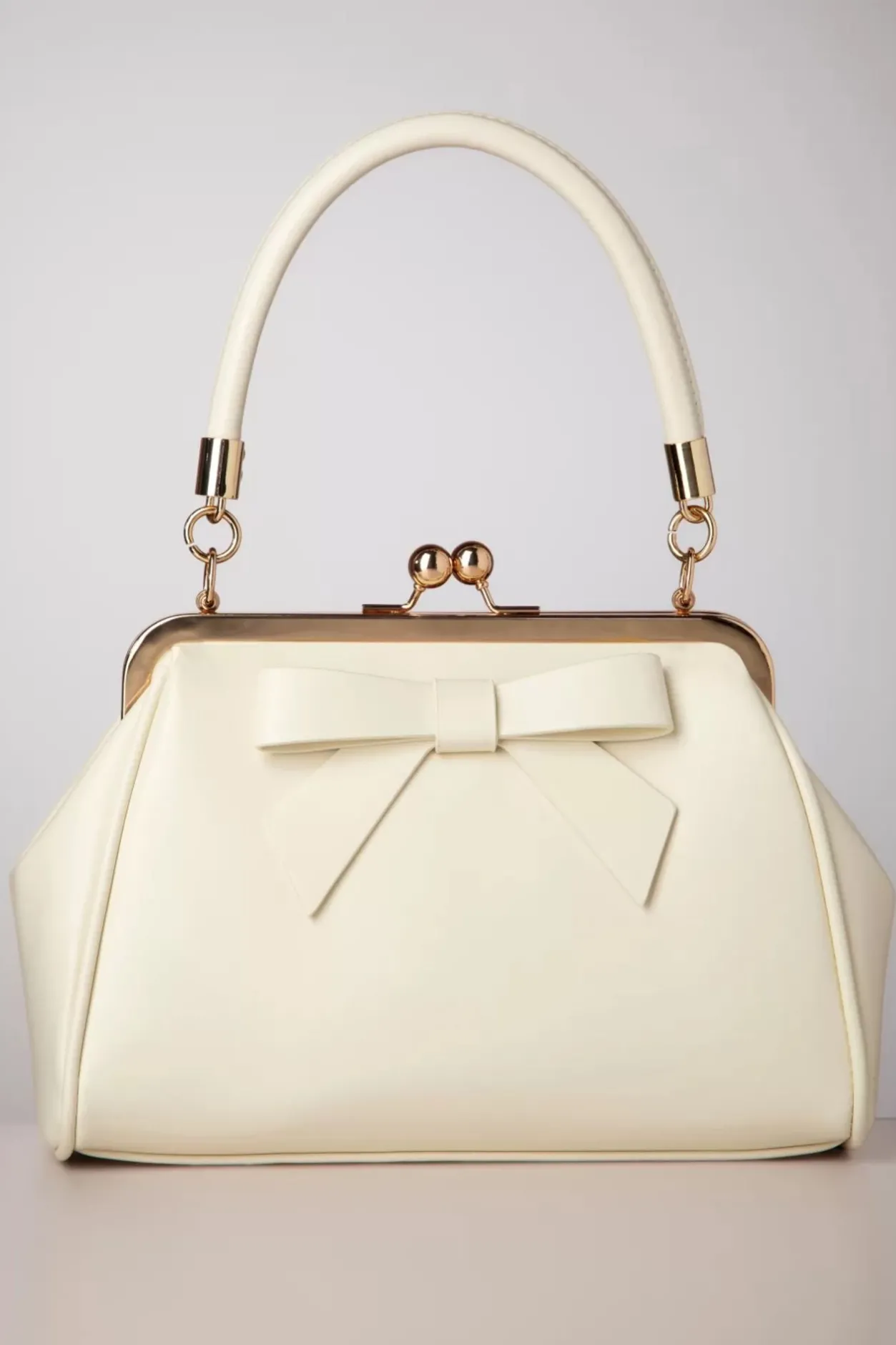 ”Just A Daydream Away!” Dit Kleine Zusje Van De Klassieke American Vintage Bag Heeft Een Opvallende Goudkleurige Metalen Klipsluiting Voor Een Echte Vintage Look En Is Uitgevoerd In Crèmekleurig Mat Imitatie Leder Afgewerkt Met Een Schattige Strik.