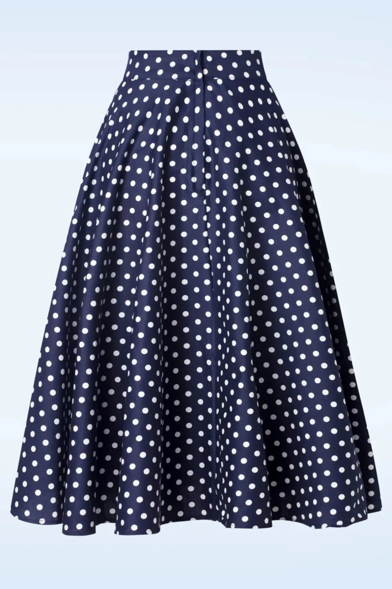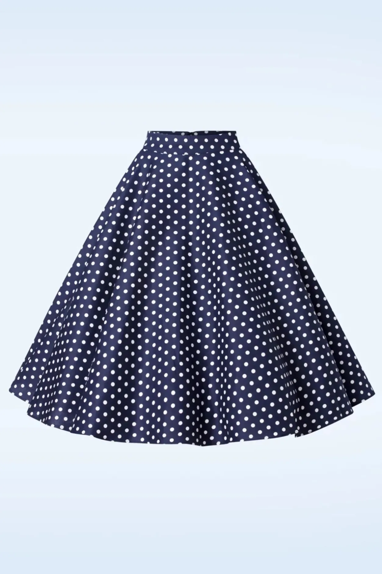 Wat Een Dotje, Deze Swing Rok! Ze Is Uitgevoerd In Een Stevige Maar Luchtige, Navyblauwe Katoenmix Met Een Witte Polkadot Print. Dot Days Are Never Over! 😉