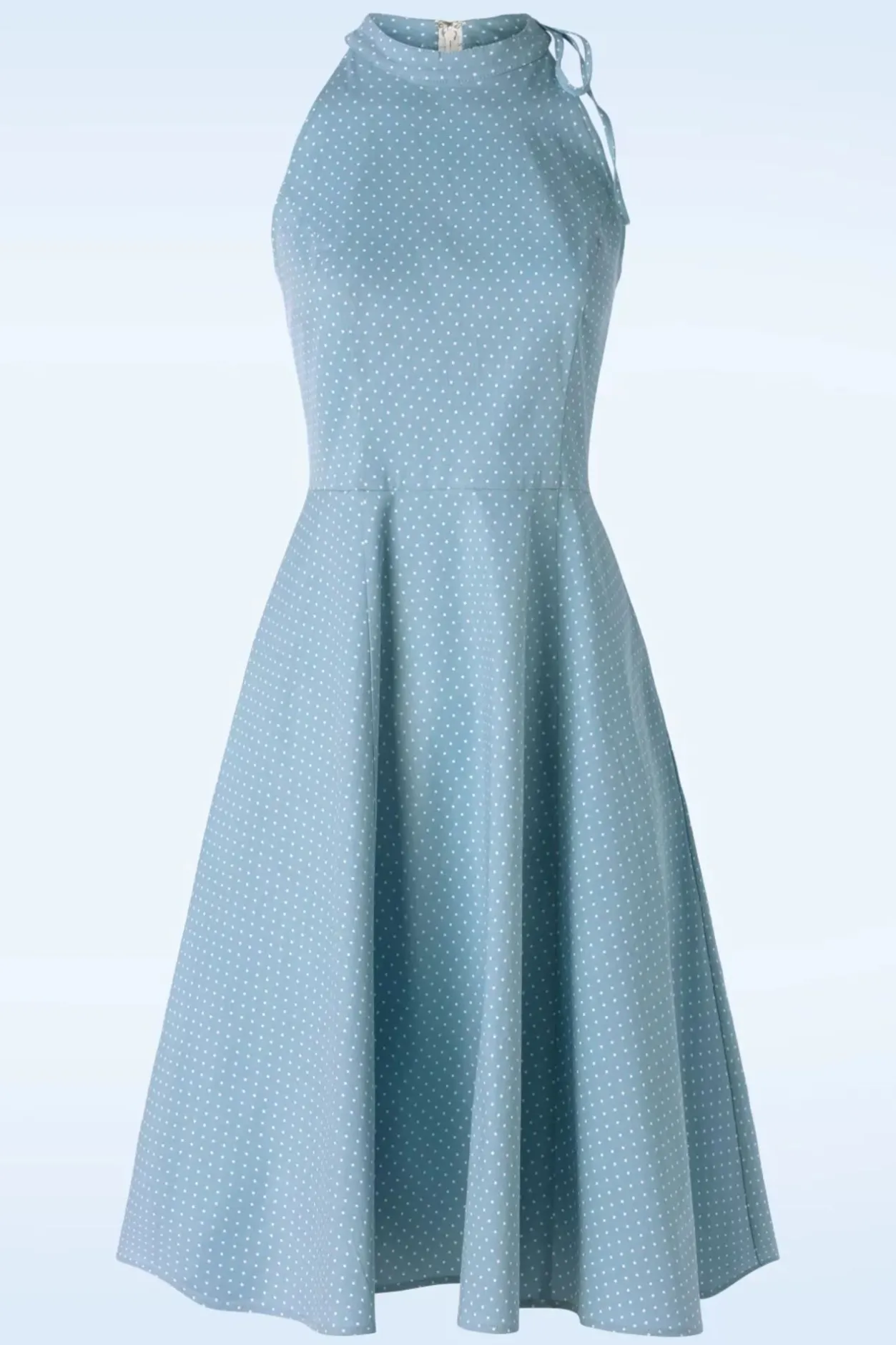 Is Het Geen Dotje?! Deze Halterstijl Swing Beauty Is Uitgevoerd In Een Luchtige Lichtblauwe, Stretchy Katoenmix En Een Print Van Witte Polkadots.