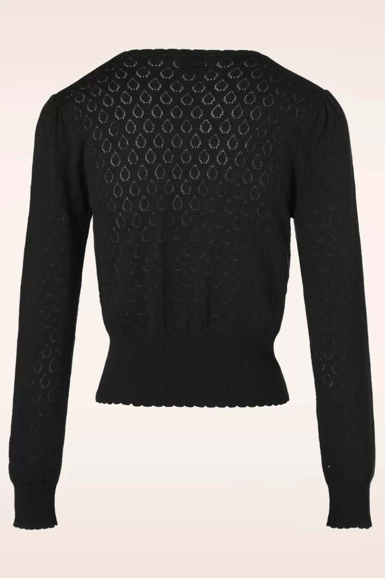 Deze 50S Instinct Wrap Top In Black Laat Je Op En Top Vrouw Voelen! Je Zult Menig Mannenharten Op Hol Doen Slaan Wanneer Jij Deze Prachtige Overslag Top Draagt! Natuurlijk Is Het Stijltje Op Zich Al Mooi Maar Het Geschulpte Ribboord En Elegant Opengewerkt Ajour Druppelpatroon Maken Het Geheel Helemaal Af. Uitgevoerd In Een Stretchy, Fijngebreide Zwarte Viscosemix Voor Een Héérlijk Draagcomfort. Your First Instinct Is Always Right… And Our Instinct Tells Us We Should Have This Fabulous Top! 😉