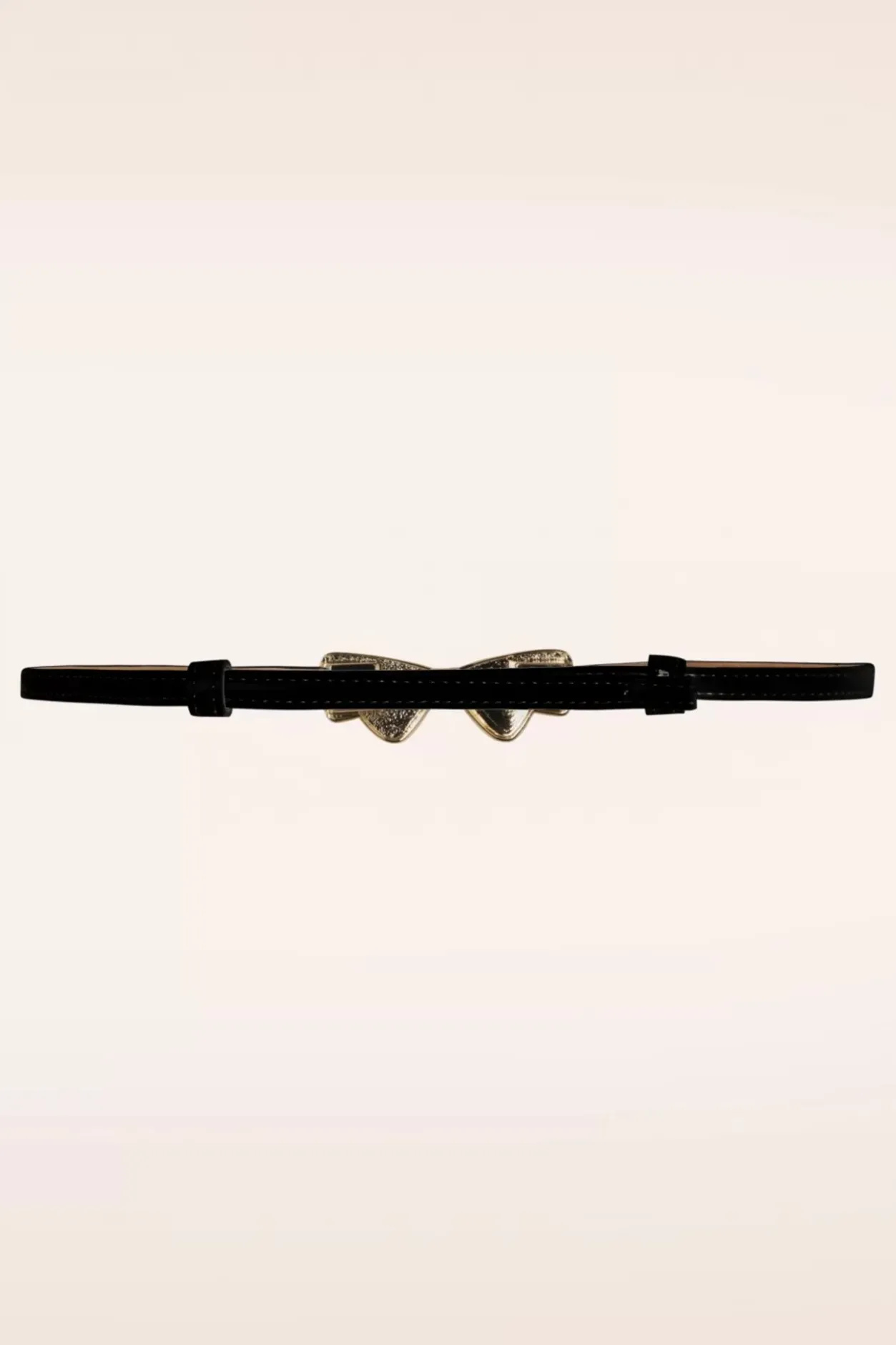 Deze 50S Lana Bow Riem In Zwart Is Een Classy Riempje In Vintage Look En Een Aanvulling Op Elke Outfit. Dit Smalle, Verstelbare Model Is Uitgevoerd In Zwart ‘Faux’ Lakleder En Sluit D.M.V. Een Elegant Goudkleurig Strikje, Très Chique! Een Echte Must-Have Voor Alle Vintage Loving Ladies!