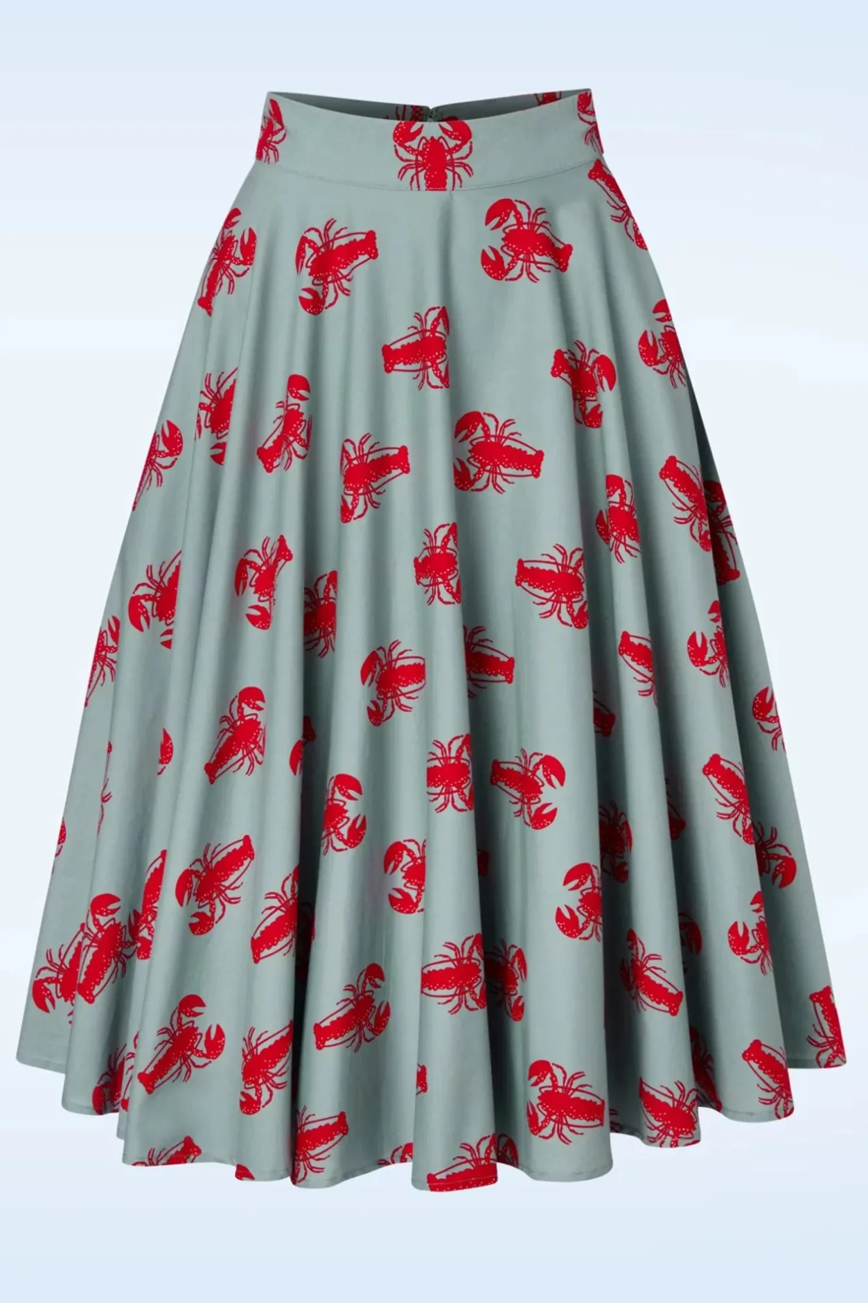 Feitje: ”Lobsters Fall In Love And Mate For Life…” How Cute! Deze Lobster Love Skirt In Blue Is Liefde Op Het Eerste Gezicht! Ze Wordt Hoog In De Taille Gedragen En Loopt Uit In Een Flatterende, Zwierige Swing Rok. Uitgevoerd In Een Stevige, Maar Soepel Vallende, Lichtblauwe Katoenmix (Stretcht Amper) Met Een Print Van Rode Kreeftjes. Op Een Schaal Van 0 Tot 10… Hoe Gelukkig Word Jij Van Deze Rok? 😉