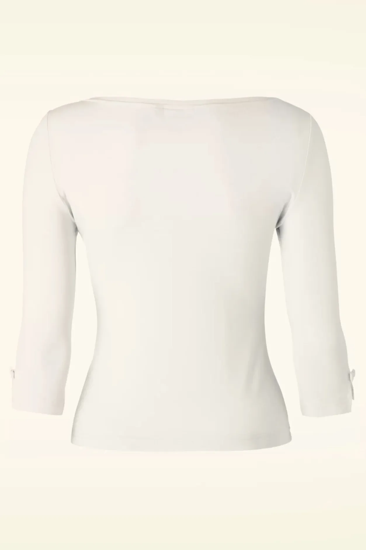 Elegant En Schattig Deze 50S Modern Love Top! Eenvoudig Maar Toch Speciaal Door De Lieflijke Details! De Top Heeft Een Mooie Boothals En Mouwtjes Met Splitjes Die Afgezet Zijn Met Kleine Strikjes, Só Cute! Uitgevoerd In Een Heerlijke Soepele, Stretchy Ivoorwitte Viscose Mix Die Zijn Perfecte Pasvorm Zal Blijven Behouden, Zelfs Na Een Aantal Wasbeurten. Een Veelzijdige Classy Top Die Niet Mag Ontbreken In De Kast Van Een Echte Vintage Lady 😉
