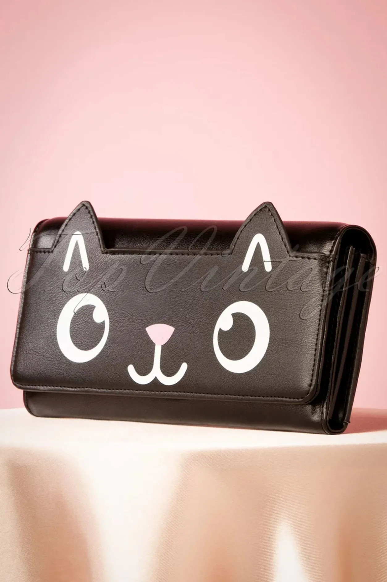 Een Kat In De Zak Kopen? Niet Met Deze Leuke Én Praktische 50S Onyx Wallet In Black! De Applicatie Van Een Katten Gezichtje In Wit En Roze Aan De Voorzijde Maakt Deze Portemonnee Nét Even Iets Leuker Dan Alle Anderen. Het Ruime Model Is Uitgevoerd In Een Stevige, Mooie Kwaliteit Zwart ‘Faux’ Leder. Ze Heeft Aan De Binnenzijde Een Extra Verdeelvak Met Ritssluiting Voor Kleingeld, Ruimte Voor 12 Pasjes En Pasfoto’s En 2 Open Vakjes Voor Bonnetjes Of Briefgeld. Afgewerkt Met Een Drukknoopje Zodat Je Centjes Veilig Opgeborgen Zijn! ”Miauw, I Want It… Now!”