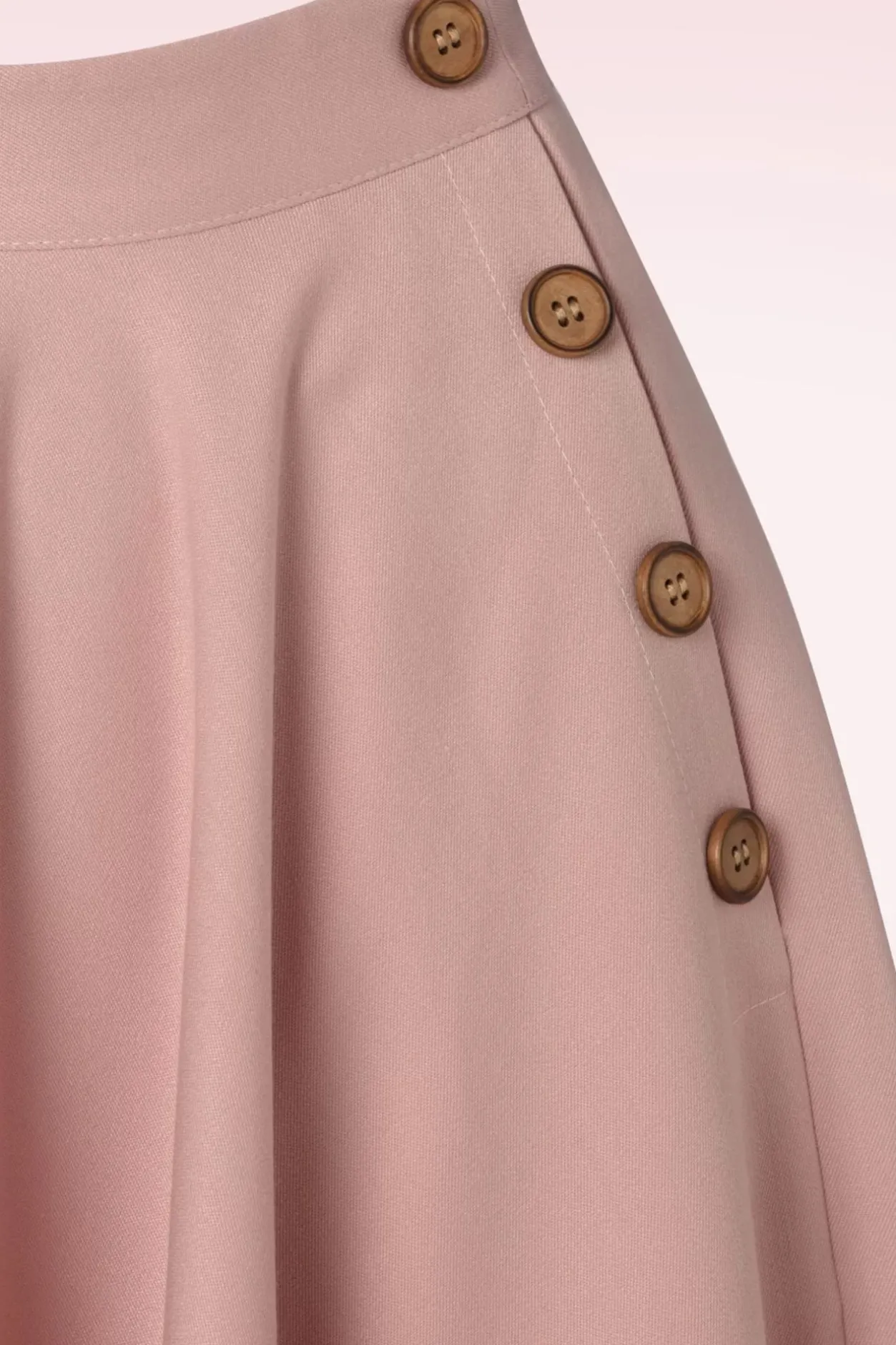 Klassiek, Tijdloos En Ontzettend Vrouwelijk! Deze Polly May Swing Skirt In Pink Kun Je Eindeloos Combineren! Je Draagt Haar Hoog In De Taille Vanwaar Zij Uitloopt In Een Elegante, Zwierige Swing Rok Met Zijwaartse ‘Faux’ Knoopdetails En Handige Steekzakjes. Uitgevoerd In Een Soepel Vallend, Lichtroze Stofje (Stretcht Amper) Die Heerlijk Draagt. Deze Swing Beauty Wordt Gegarandeerd Jouw Nieuwe Zomer Favoriet!