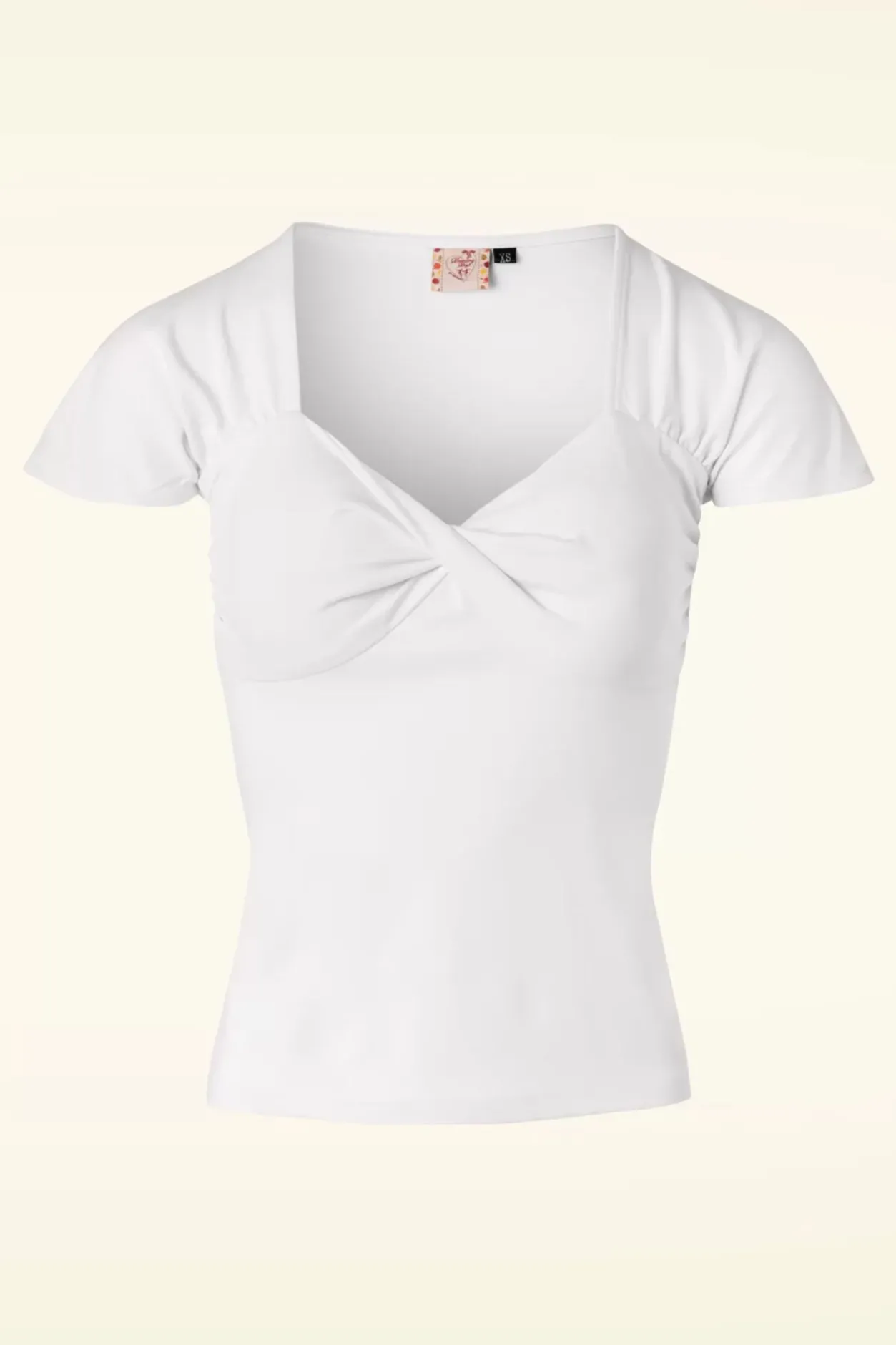 Haar Naam Doet Anders Vermoeden Maar Deze Prachtige Top Past In Iedere Garderobe, Of Je Nu Een Pin-Up Girl, Rockabella Of Vintage Vixen Bent! De Elegante Sweetheart Halslijn Die Speels Gedraaid Is Bij De Buste En Schattige Geplooide Kapmouwtjes Maken Haar Net Een Beetje Anders Dan Anders. Uitgevoerd In Een Heerlijke Soepele, Stretchy, Witte Katoenmix Die Zijn Perfecte Pasvorm Zal Blijven Behouden, Zelfs Na Een Aantal Wasbeurten. Durf Jij Het Aan Om Deze Veelzijdige Top In Je Mandje Te Klikken?!