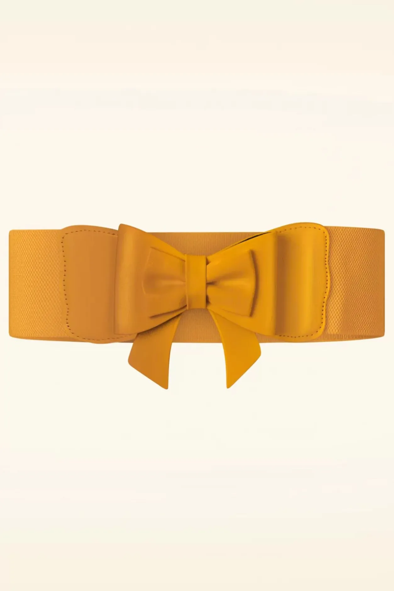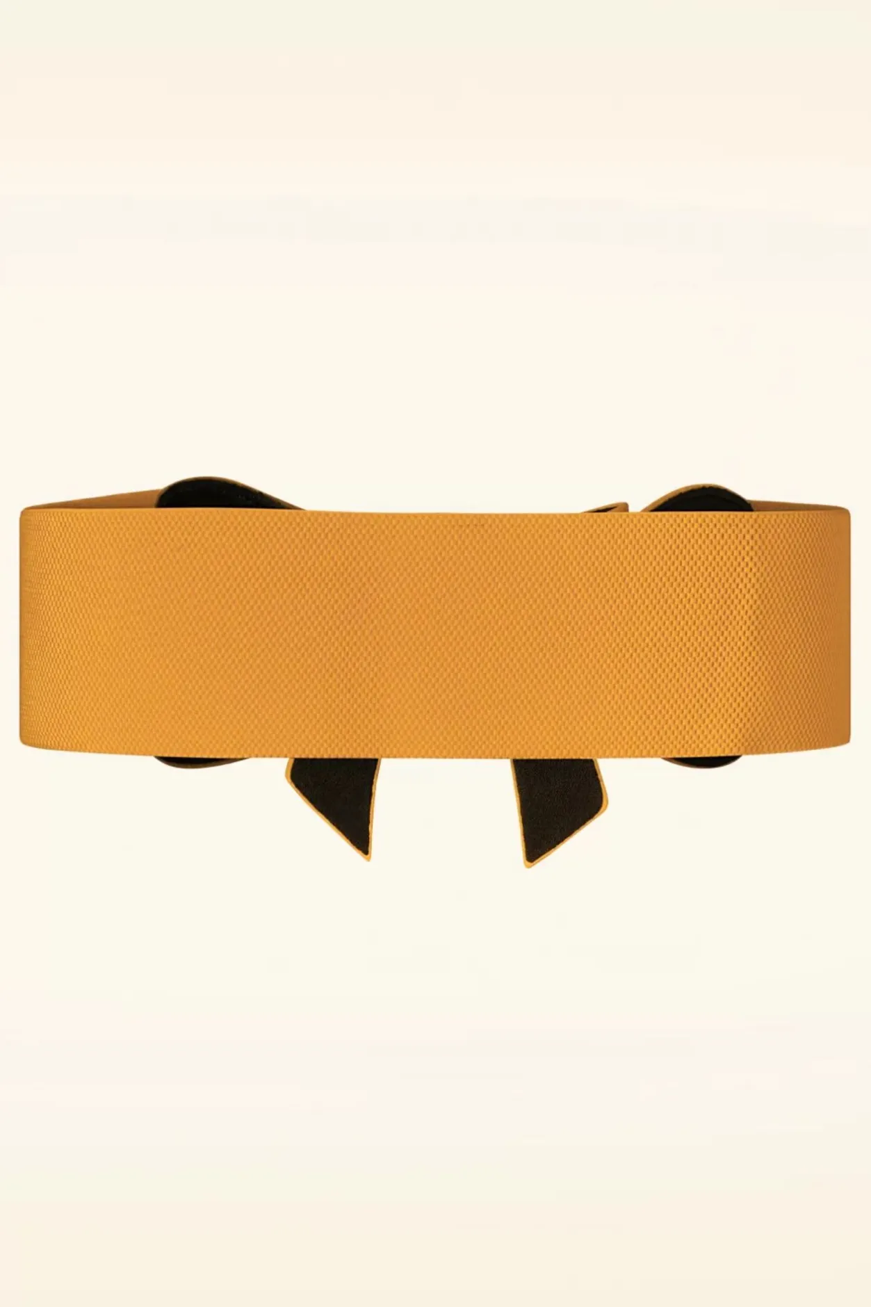 Deze 50S Play It Right Bow Belt In Mustard Is Een Geweldige Aanvulling Voor Je Vintage Garderobe. Een Wespentaille In Een Handomdraai! Dit Elastische Prachtexemplaar Is Uitgevoerd In Mosterdgeel Faux Leder Met Een Classy Strik Voor Een Onweerstaanbare Fifties Touch 😉 Haak De Strik Vast Aan De Sluiting En Je Vintage Fifties Outfit Is Helemaal Af. Verdraaid Leuk!