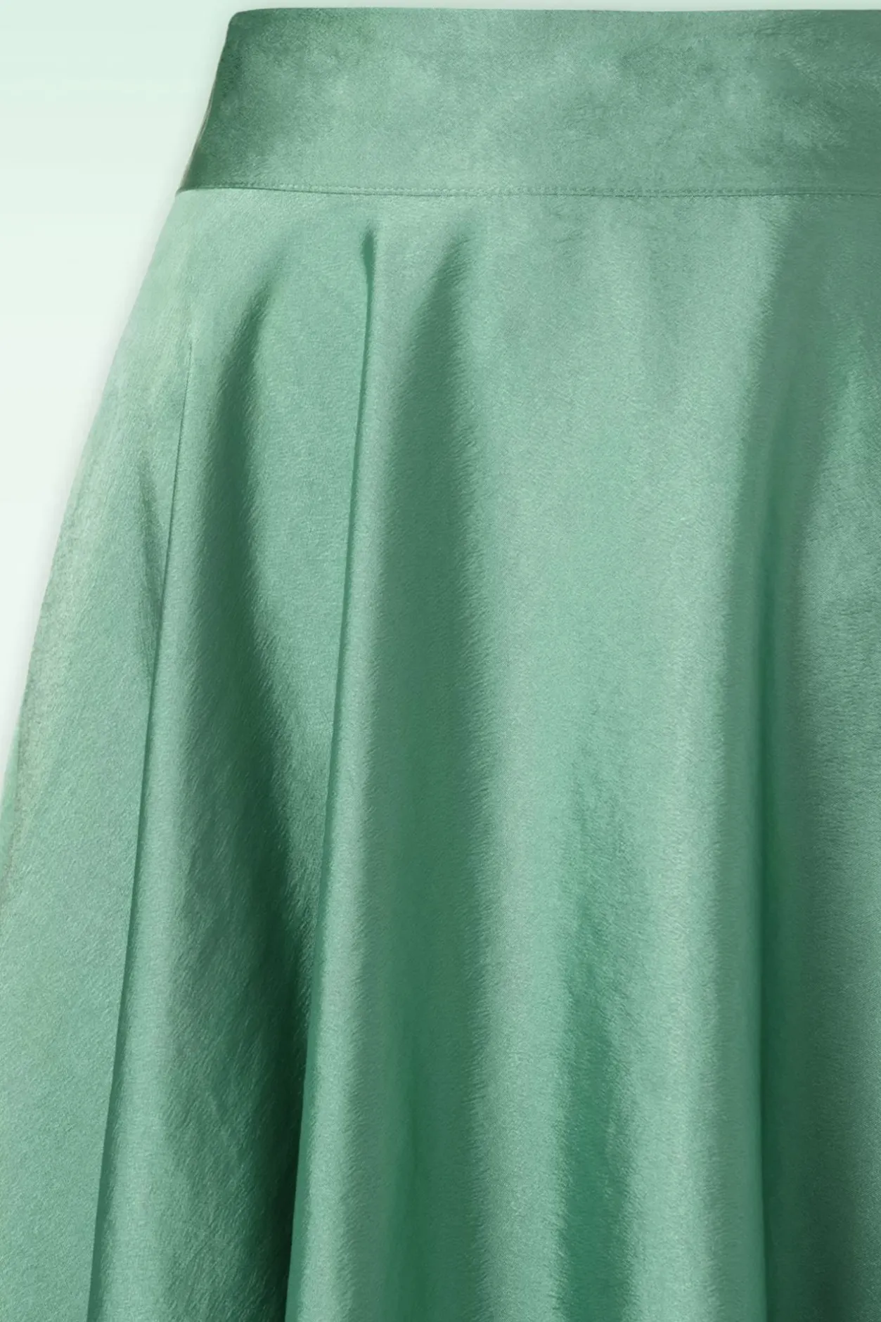 ”Twirl Like Nobody’s Watching!” Deze Swing Beauty Is Uitgevoerd In Een Soepele, Glanzende, Mintgroene Satijnen Stof (Stretcht Niet!) Die Prachtig Met Je Mee Beweegt.