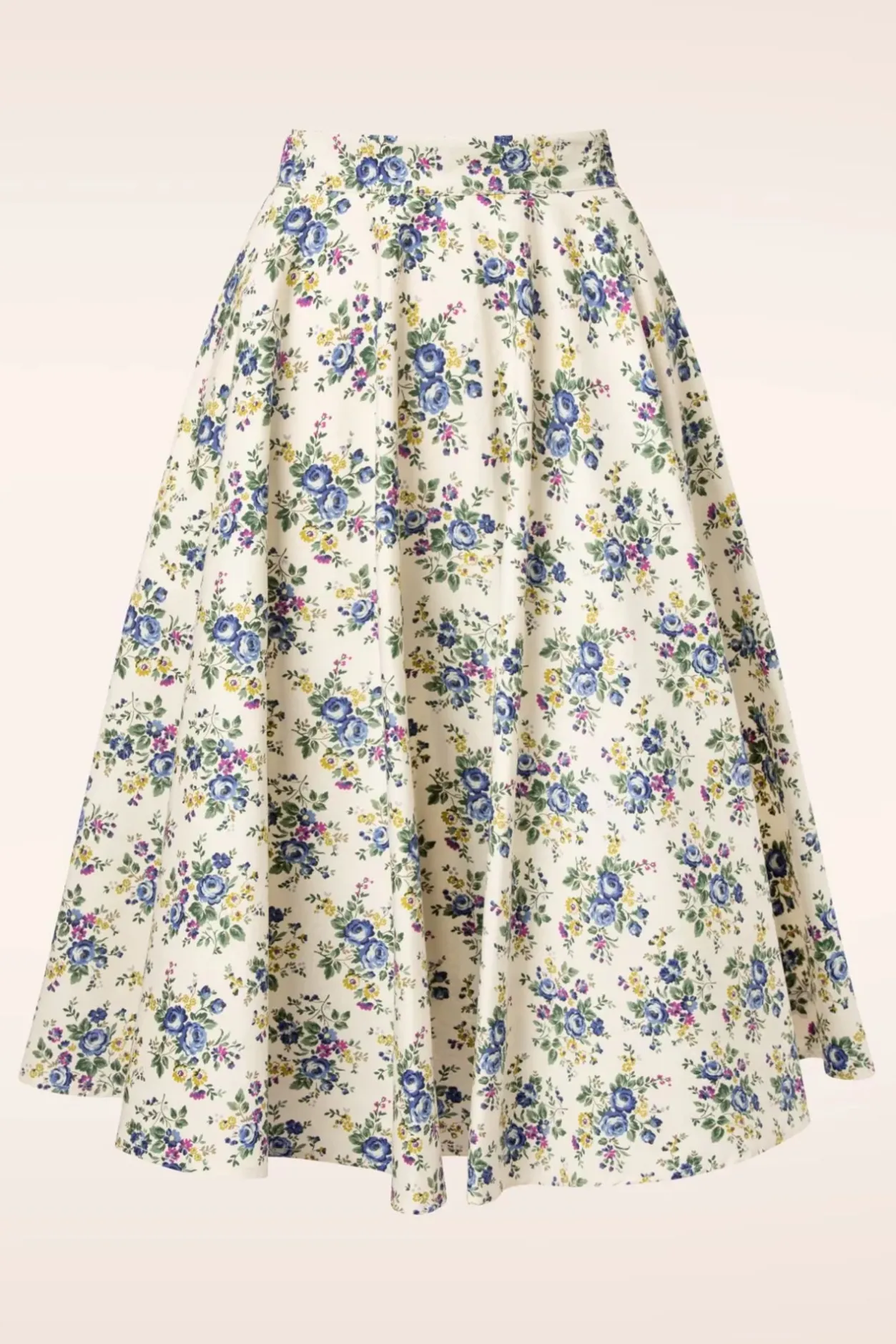 Bloei Helemaal Op In Deze 50S Wild Flower Swing Rok In Crème! Deze Rok Wordt Hoger In De Taille Gedragen En Loopt Over In Een Zwierige, Volle Swing Rok Met Handige Steekzakjes Waardoor Er Een Super Vrouwelijk Silhouet Ontstaat. Uitgevoerd In Een Stevige Maar Soepele, Crèmekleurige Katoenmix Met Een Hele Lichte Stretch Die Bezaaid Is Met Schilderachtige Bloemen. ”In A Field Of Roses, I’M A Wildflower!”