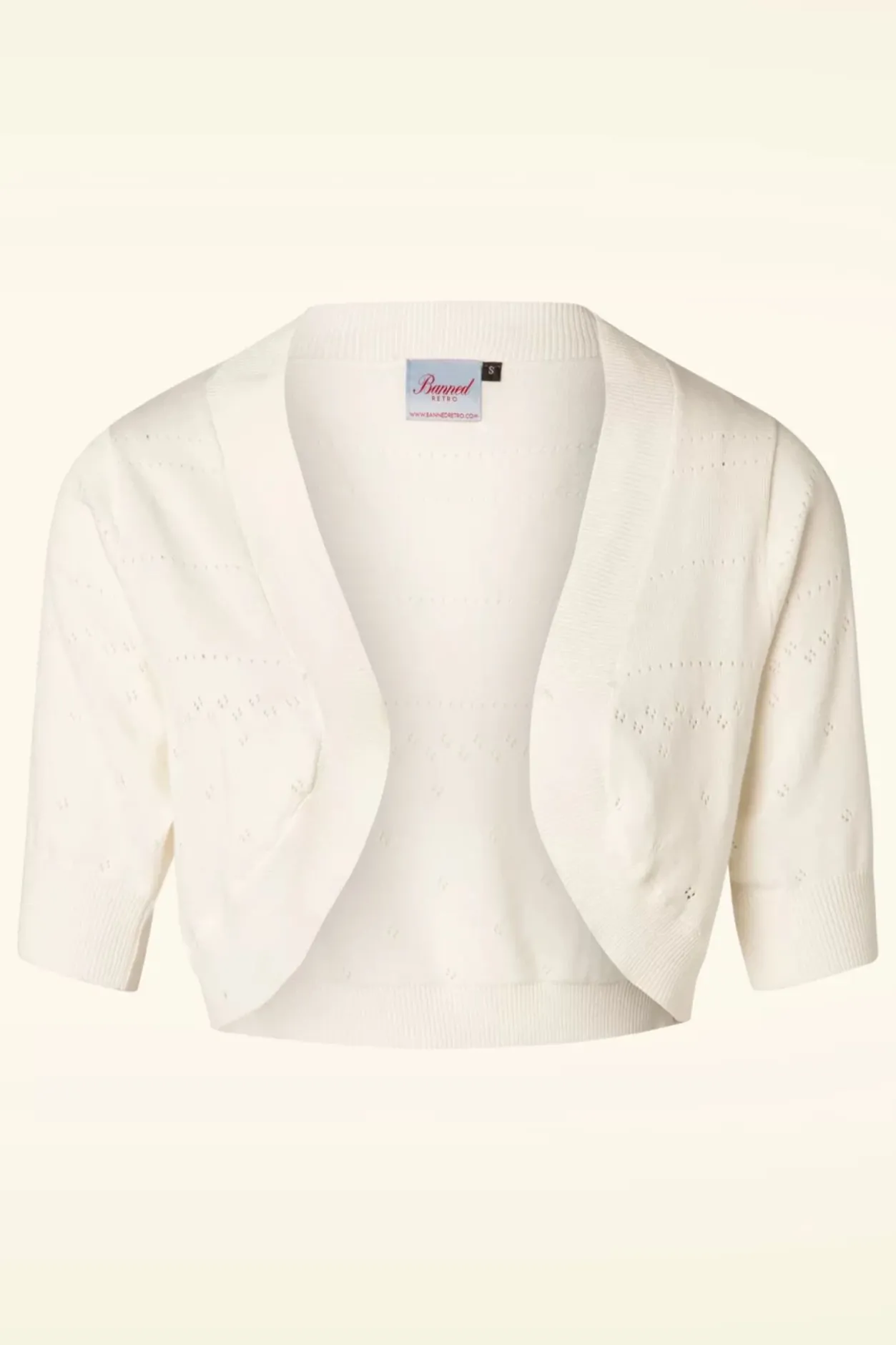 Verrijk Je Retro Outfit Met Deze 50S You Are Mysunshine Bolero In Ivory! Ook In De Zomer Kan Het In Deavond Nog Wat Fris Aanvoelen Maar Je Hebt Je Mooiste Zomerjurk Aan En Een Jasjedoet Daar Afbreuk Aan, Wat Nu? Nou, Deze Te Leuke Bolero Aanschaffen Dus!Uitgevoerd In Een Zachte, Stretchy, Fijngebreide Mix Van Viscose En Katoen Ineen Ivoorwitte Kleur En Voorzien Van Een Schattig Opengewerkt Patroon. “You Are My Sunshine, My Only Sunshine, You Makeme Happy When Skies Are Gray” 😉
