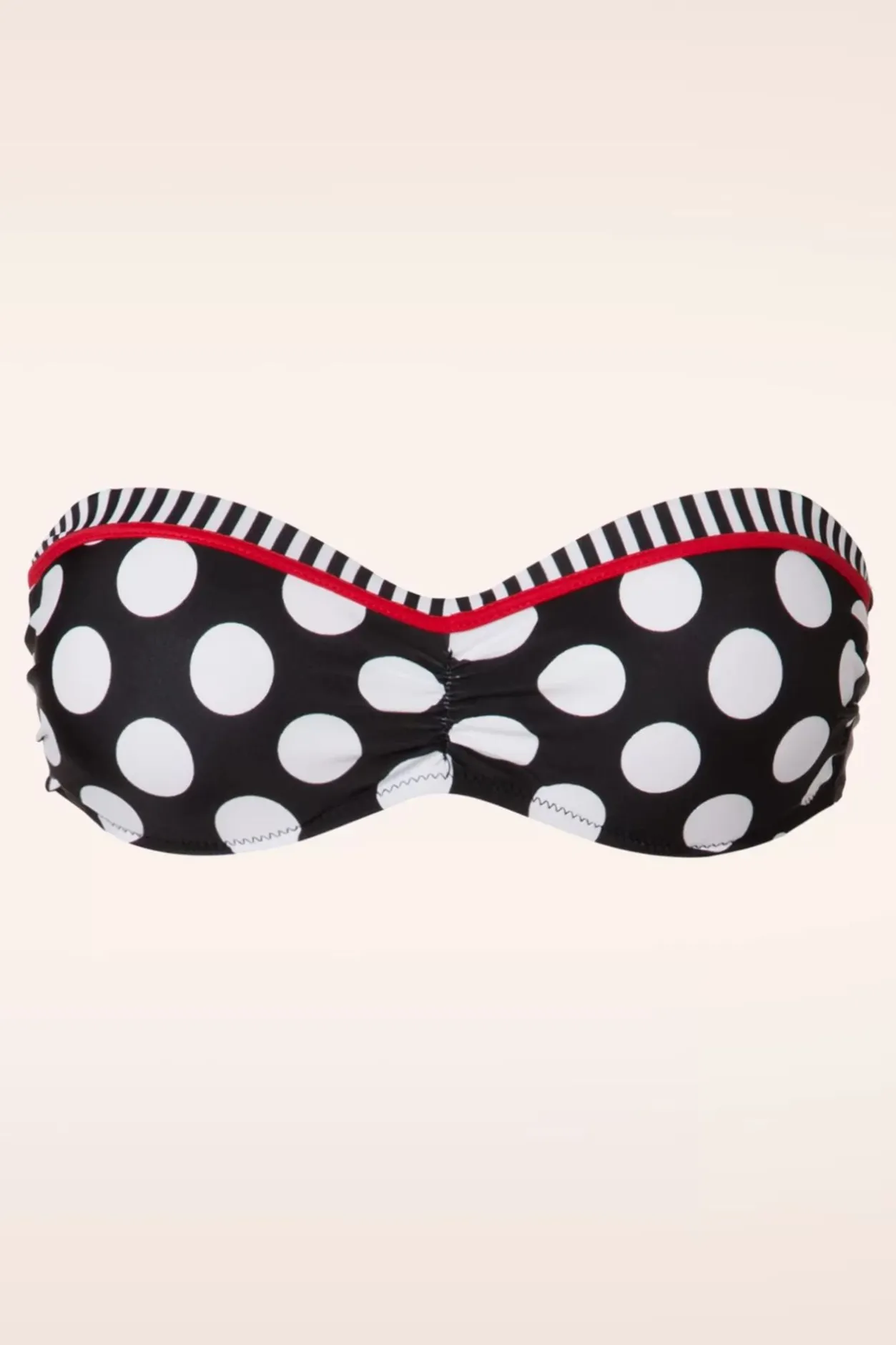 Met Deze 50S Debra Polkadot Stripes Halter Bikini Top In Black And White Ben Jij Summerproof! Debra Heeft Een Halterstijl Bandje, Voorgevormde Push-Up Cups Waardoor Je Borsten Net Dat Beetje Extra Steun Krijgen En Een Speels Plooidetail Bij De Buste. Het Halterbandje Is Natuurlijk Heel Erg Handig Als Jij Een Frisse Duik Gaat Nemen Maar Wanneer Jij In Het Zonnetje Gaat Liggen Met Een Cocktail In Je Handen Kan Jij Het Bandje Er Gewoon Van Af Halen… We Only Love White Stripes On Our Bikini 😉 Uitgevoerd In Een Comfortabel, Stretchy Stofje Met Witte Polkadots En Streepjes Dat Heerlijk Draagt En Perfect Aansluit. Deze Showstopper Mag Absoluut Niet In Je Vintage Swimwear Collectie Ontbreken!