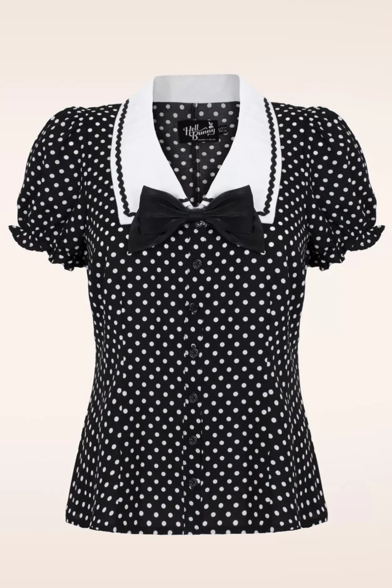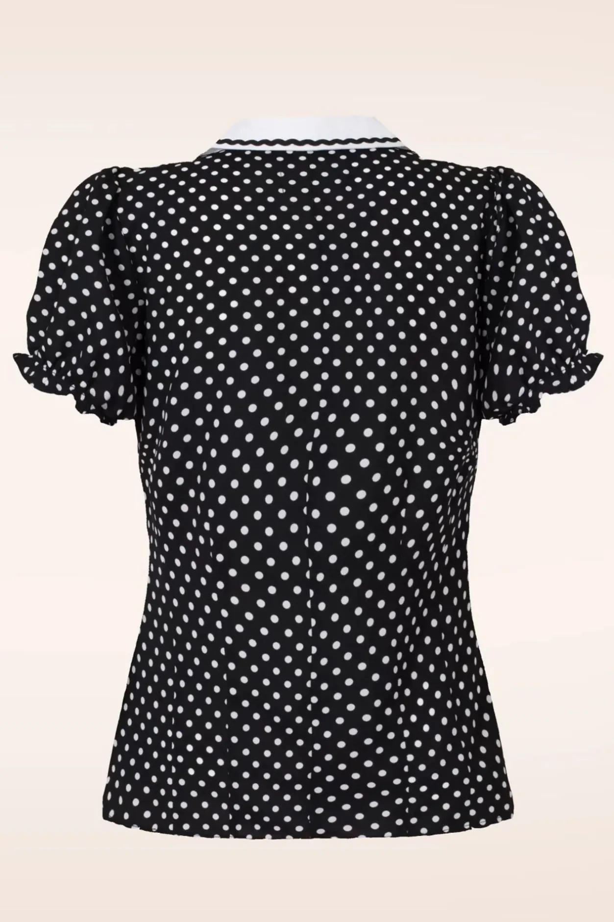 Naomi Heeft Ons Hartje Gestolen! Ze Heeft Korte Pofmouwen, Een Contrasterende Kraag En Een Afneembare Strikbroche. Uitgevoerd In Een Soepele, Luchtige, Zwarte Stof (Stretcht Niet!) Bezaaid Met Witte Polkadots Die Heerlijk Draagt. Ben Jij Al Verliefd? 😉