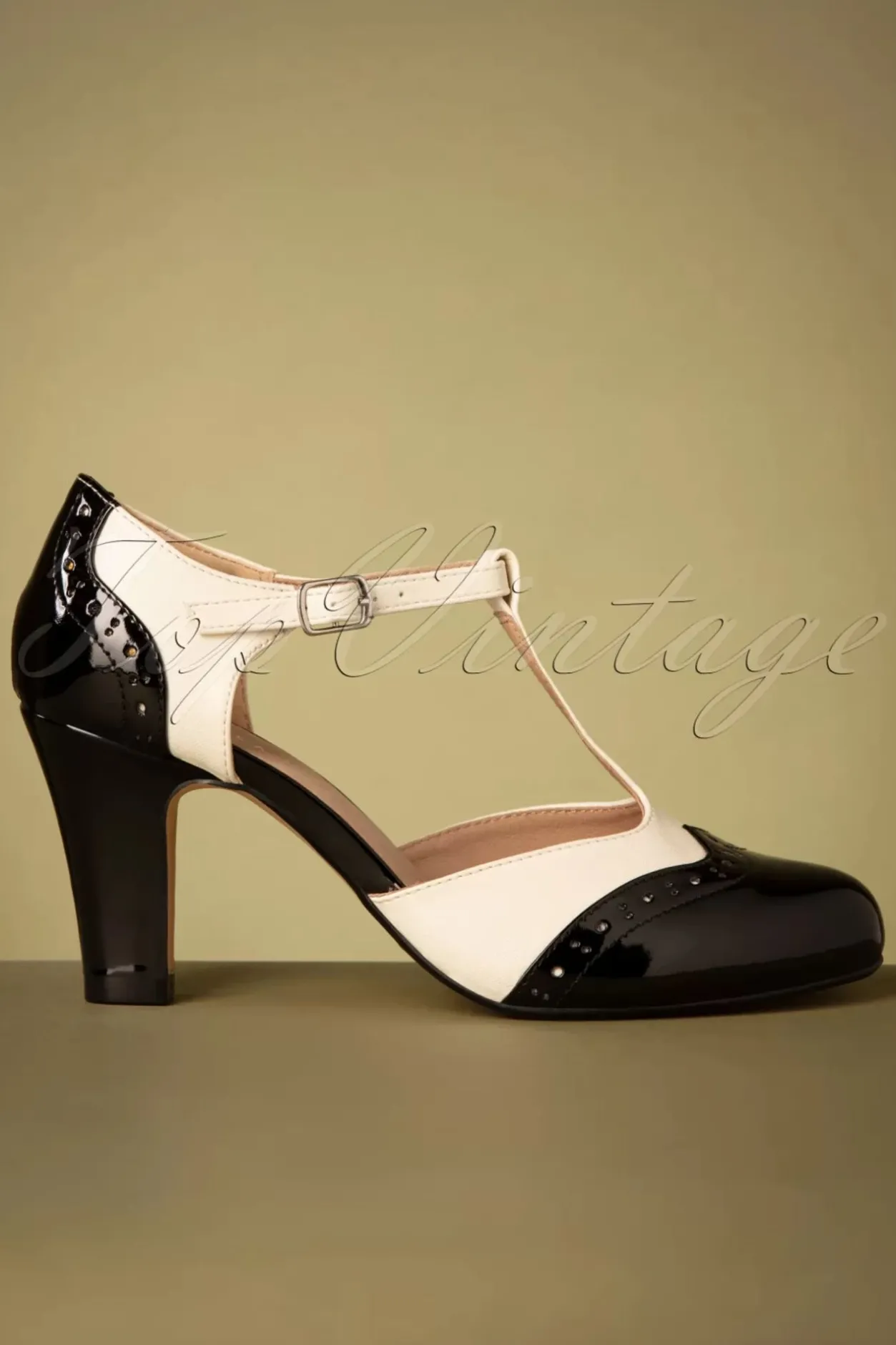 ”step Out In Style… Gatsby Style!” Stijlvol Voor De Dag Komen Doe Je Met Deze 20S Gatsby T-Strap Pumps In Black And White Aan Je Voetjes! Uitgevoerd In Een Combinatie Van Zwart ‘Faux’ Lakleder En Ivoorwit ‘Faux’ Leder, Afgewerkt Met Een T-Strap Bandje, Brogue Details En Een Hoge Hak. De Zachte Binnenzool Van Leder Zorgt Bovendien Voor Een Aangenaam Draagcomfort. Stap Terug In De Jaren 20 ‘And Have A Roaring Good Time’!