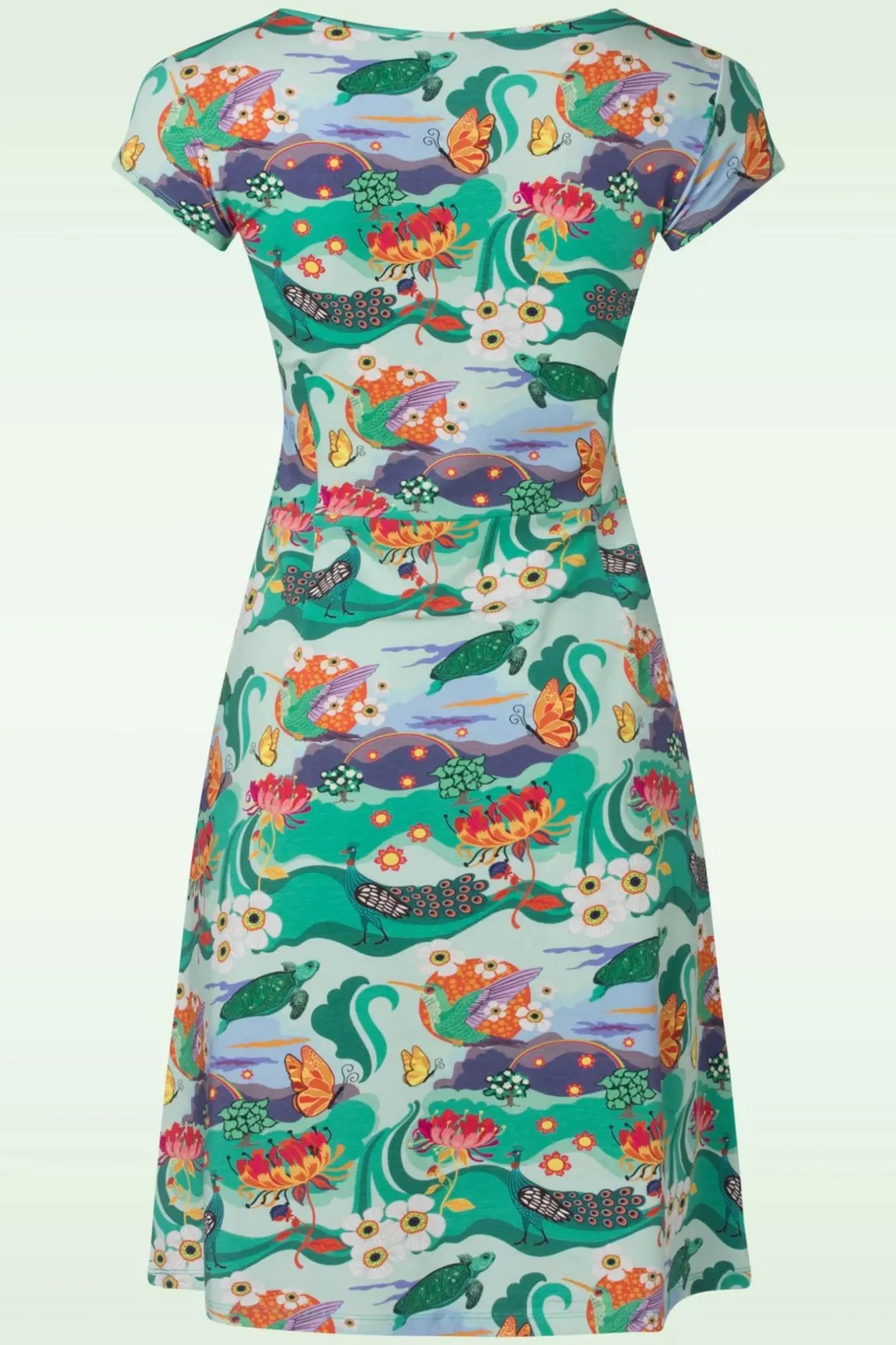 ”Time To Go Retro!” Deze A-Lijn Jurk Is Uitgevoerd In Een Soepele En Stretchy Organische Katoen, Voorzien Van Een Kleurrijke Print.