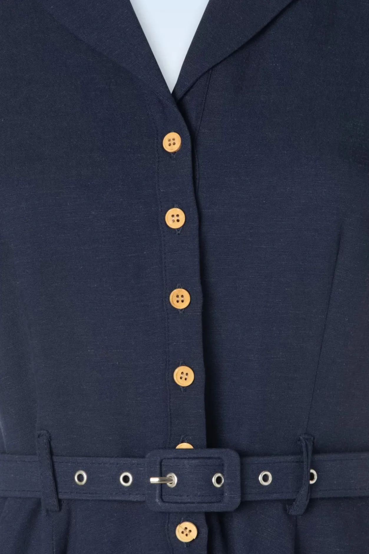 Nieuwe Lente/Zomercollectie ~ ”Oops, I Blue It Again!” Deze Prachtige Blouse-Jurk Die Niet Alleen Ideaal Is Voor Een Retro Look ’s Avonds, Deze Semi-Swing Beauty Met Speelse Houten Knoopjes Leent Zich Ook Goed Voor Kantoor! Uitgevoerd In Een Flatterende Donkerblauwe Viscosemix, Voorzien Van Een Vleugje Linnen.