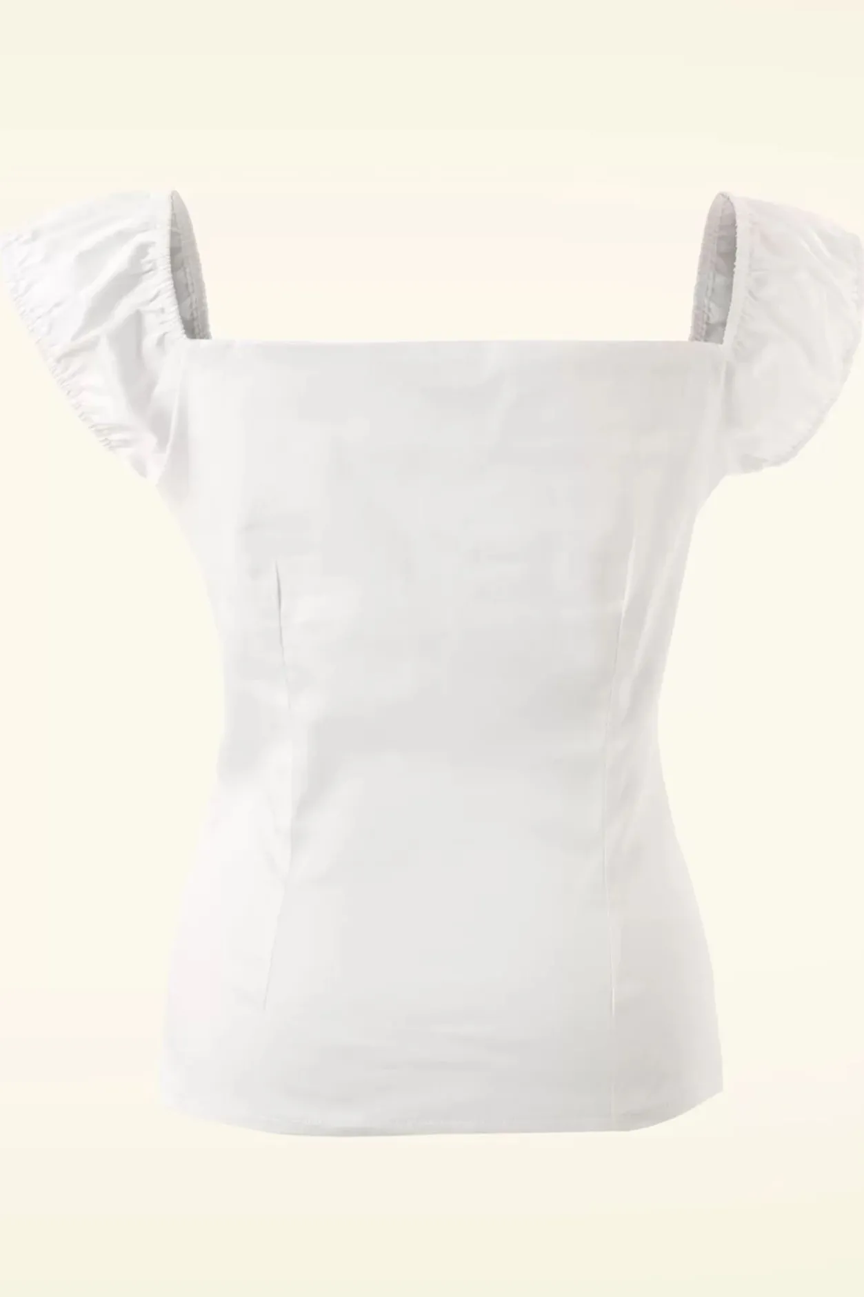 Hola Señorita! De 50S Dolores Top In White Is Een Ware Must-Have! Top In Carmen Style, Schattige Pofmouwtjes Die Off-Shoulder Gedragen Kunnen Worden En Plooitjes Bij De Buste Voor Een Mooi Decolleté. Uitgevoerd In Een Witte Katoenmix Met Een Lichte Stretch Voor Een Heerlijke Pasvorm. The Always Oh So Pretty Dolores!