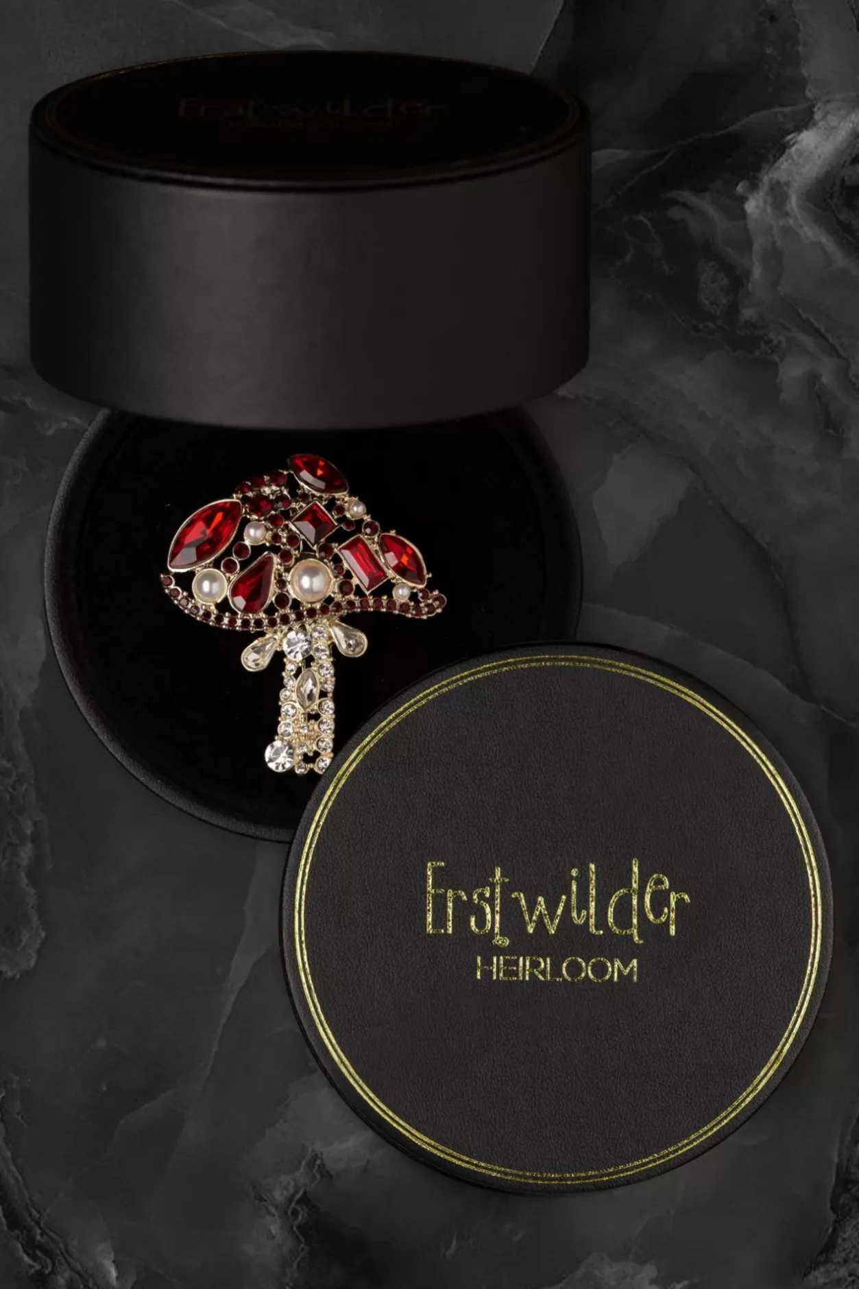 Erstwilder Weet Ons Weer Omver Te Blazen Met Deze ‘Heirloom Crystal Series’! Een Unieke Broche In De Vorm Van Een Paddenstoel, Uitgevoerd In Verguld 18K Goud En Bezet Met Kunstpareltjes En Tsjechische Glaskristallen.