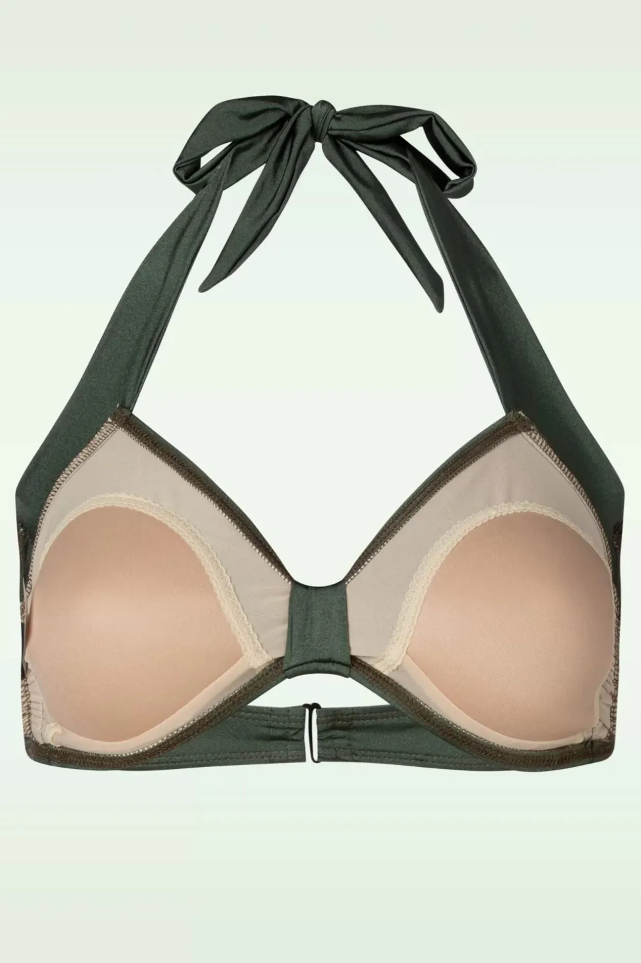 Deze Fantastische Classic Bikini Top In Dark Olive Heeft De Perfecte Vintage Pin-Up Uitstraling; Van Haar Halterbandjes Tot Aan Het Shiny Stofje. Deze Collectie Is Ontworpen Voor Echte Vrouwen En Is Passend Voor Vrijwel Elk Lichaamstype En Kleedt Ongelooflijk Af! Uitgevoerd In Een High Quality, Gladde, Glanzende Olijfgroene Stof Die Heerlijk Draagt En Voorzien Is Van Ingenaaide Soft Cups Met Verstevigde Baleinen Aan De Zijkant. Niet Enkel Om Te Flaneren, Maar Uiteraard Ook Geschikt Voor Een Frisse Duik Zonder Zorgen 😉