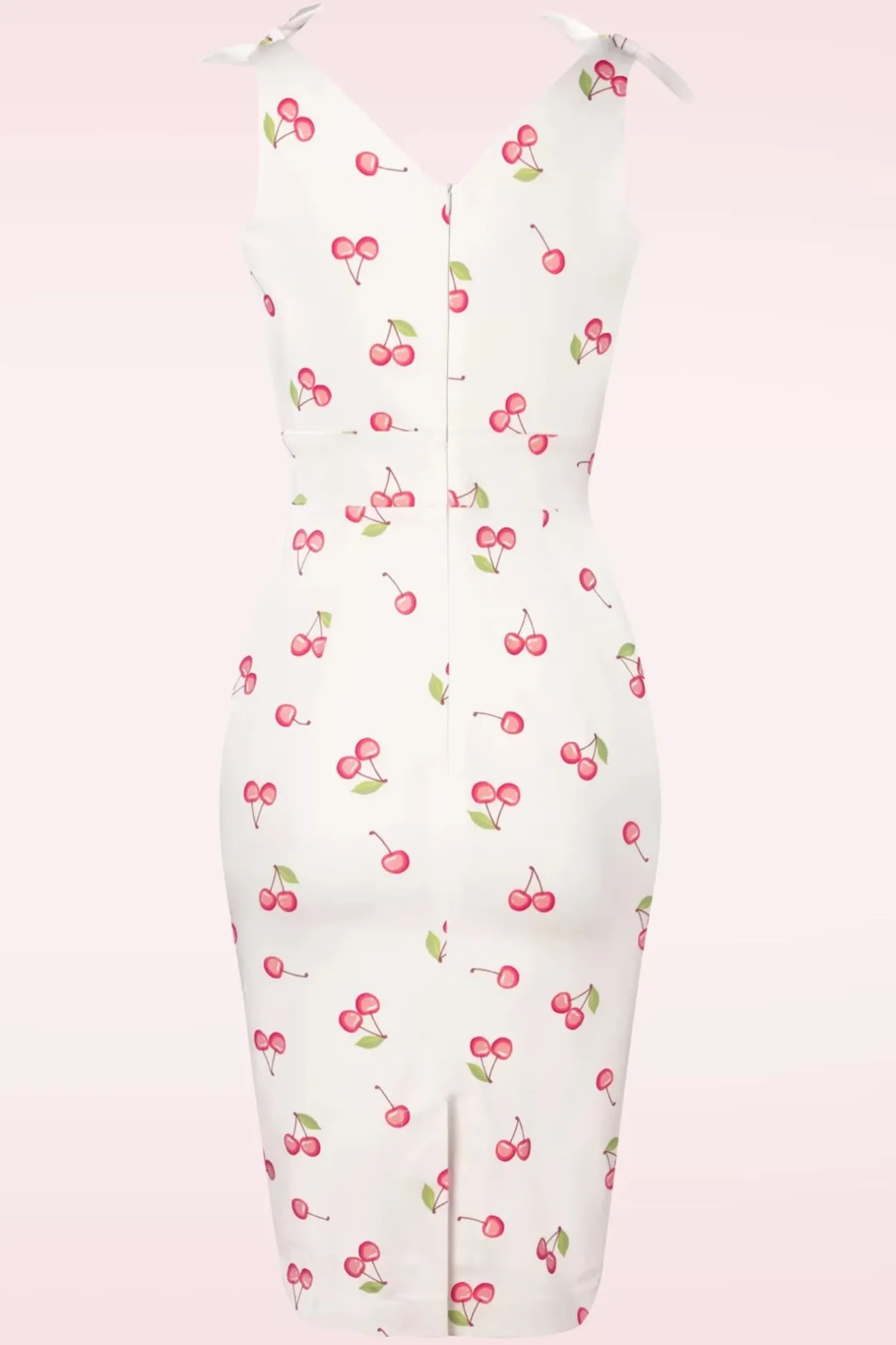 ”Destination? Paradise!” En Of Dat Nu De Franse Riviera Is Of Gewoon Aan De Kust In Eigen Land… Flaneren Doe Je In The Harper Cherry Print Pencil Dress In White Uit De Nieuwe Glamour Bunny Collectie! Een Classy, Body Hugging Pencil Dress Die De ‘sass’ In ‘sassy’ Stopt Met Haar V-Hals, Vaste Overslag En Flirty Strikdetails Op De Schouders. Uitgevoerd In Een Stevige Maar Soepele, Katoenmix Met Lieve Rode Kersjes En Een Hele Lichte Stretch Waardoor Je Rondingen Subliem Tot Hun Recht Komen En Je Zelfvertrouwen Naar Een Ongekende Hoogte Stijgt. ”Jet-Set Your Way Through Summer, Hunnie!”