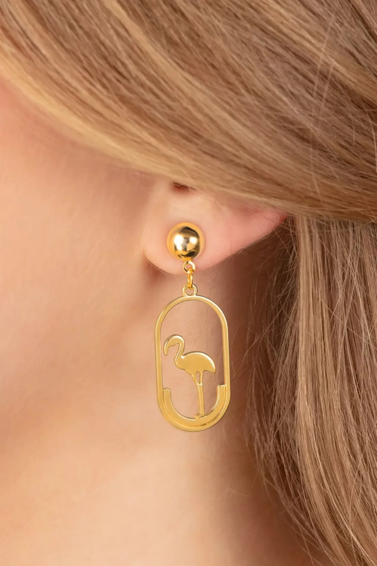 Nieuwe Collectie ~ ”Flamazing!” Deze Goudkleurige, Stekers Zijn Voorzien Van Een Ovale Hanger, Voorzien Van Een Flamingo.