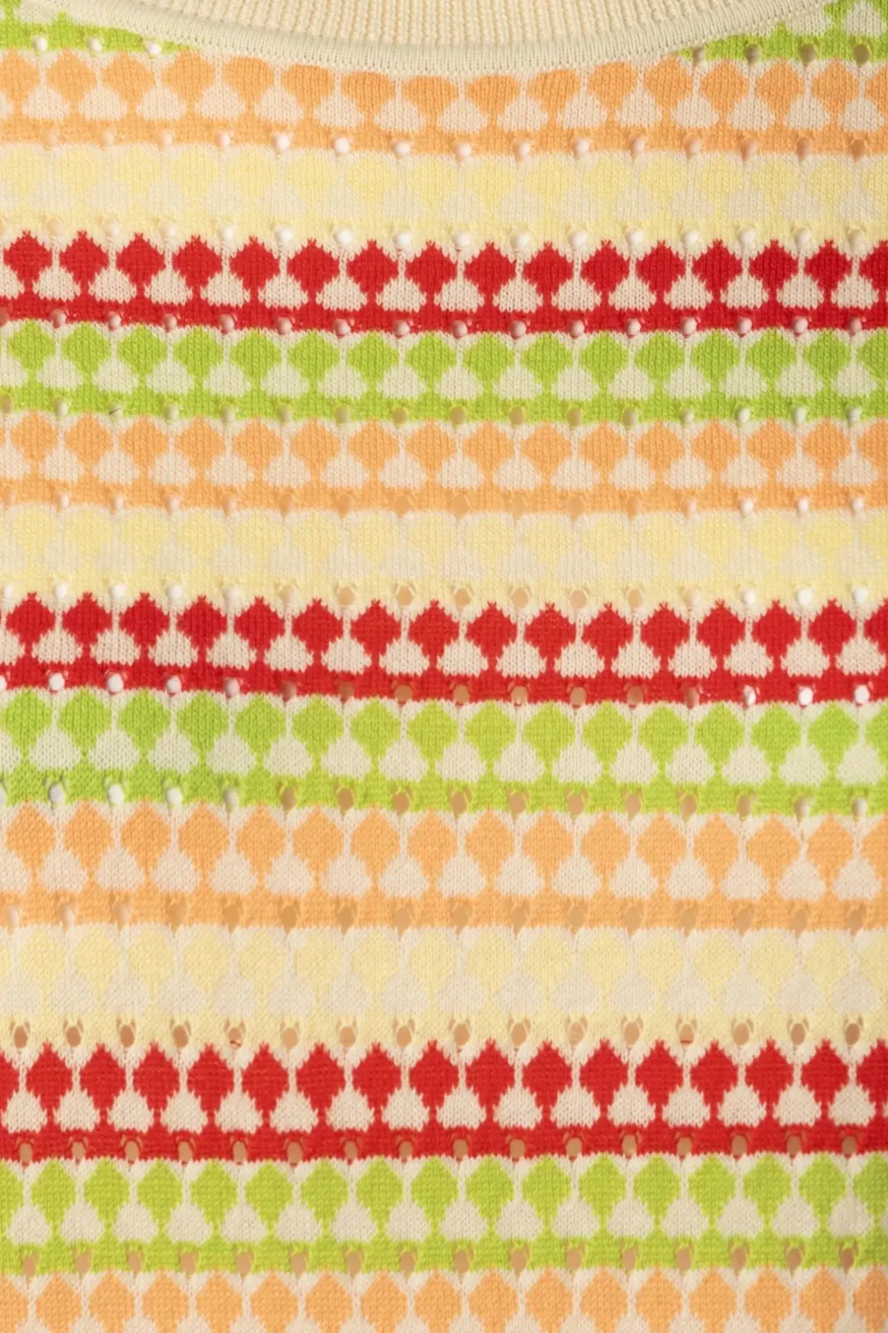 Hoe Mooi Is Deze Knitted Cutie?! Ze Is Uitgevoerd In Een Soepele En Stretchy, Fijn Gebreide, Opengewerkte, Kleurrijke Bio Katoen Die Heerlijk Draagt. “Preppy But Cute, Just The Way We Like It!”