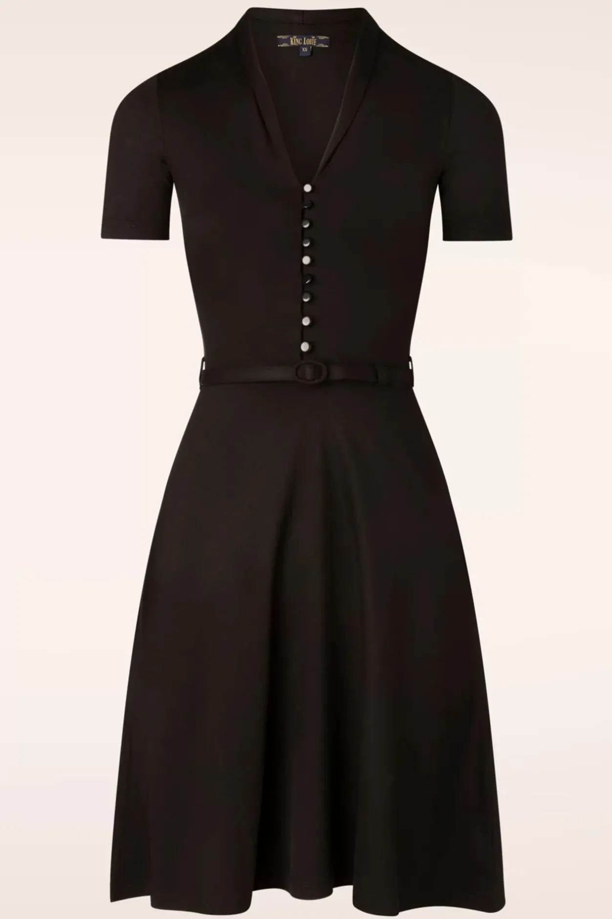 Deze Emmy Ecovero Classic Jurk In Zwart Wil Je Iedere Dag Wel Dragen! Dezejurk Is Speels Maar Toch Heel Vrouwelijk Door Haar Aansluitende Top Metv-Halslijn, Het Sjaalkraagje, De Korte Mouwtjes En De Reeks Knoopjes. Vanuit Het Lijfje Loopt Ze Over In Een Zwierige, Flatterendesemi-Swing Rok. Ze Accentueert Je Taille Nog Eens Extra Door Het Smalle Riempje.Uitgevoerd In Een Heerlijke Soepele, Stretchy, Zwarte Ecovero Viscosemix In Een Klassieke Zwarte Kleur. L-O-V-E!