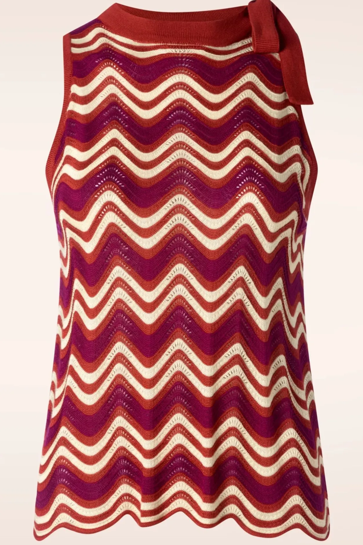Grooveland Is Seventies At Its Best! Ze Heeft Speelse Strikbanden, Een Geschulpte Bies En Is Uitgevoerd In Een Gebreide, Zachte Viscose Met Een Opengewerkt Patroon.