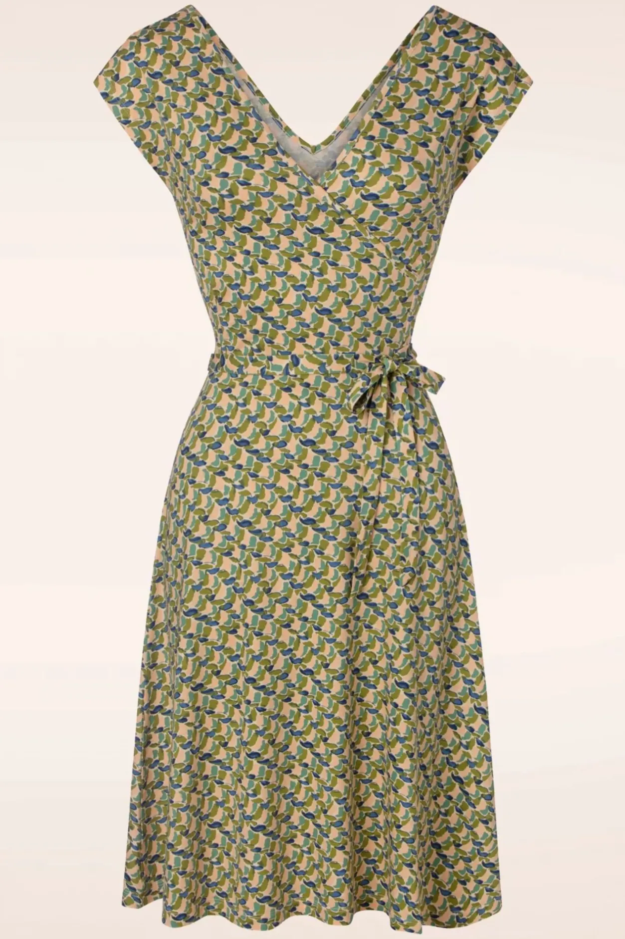 Verliefd Met Een Hoofdletter V! Want Deze Mira Merlini Dress In Woodbine Green Is Voorzien Van Een Prachtige V-Hals Met Vaste Overslag Maar Is Ook Op De Rug Uitgesneden In Een Lage V! Bovendien Ademt Ze Één En Al Vintage Dankzij Haar Flatterende Semi-Swing Stijl, Haar Korte Kapmouwtjes En De Afneembare Matching Sash In De Taille. Uitgevoerd In Een Soepele En Stretchy, Lentegroene (Ecovero) Viscosemix Met Een Geweldige, Kleurrijke Retro Print Die Heerlijk Luchtig Draagt. En Je Weet Wat Ze Zeggen; Geef Je Over Aan De Liefde! 😉