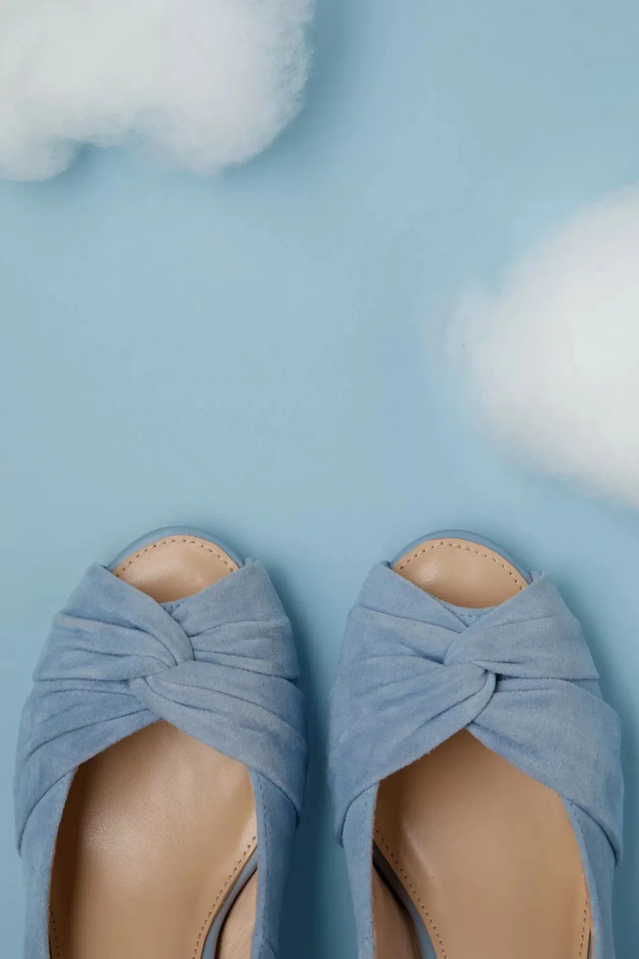 ”Truly, Madly, Deeply In Love!” Topvintage En Lola Ramona Hebben Een Collectie Ontworpen Die In Het Teken Staat Van De Liefde… De Liefde Voor Schoenen Welteverstaan 😉 Peeptoe Pumps Uitgevoerd In Hoogwaardig Lichtblauw Suède, Voorzien Van Een Speels Gedraaid Detail En Een Stevige, Niet Al Te Hoge Hak. En Onthoudt: ”shoe Love Is True Love!”