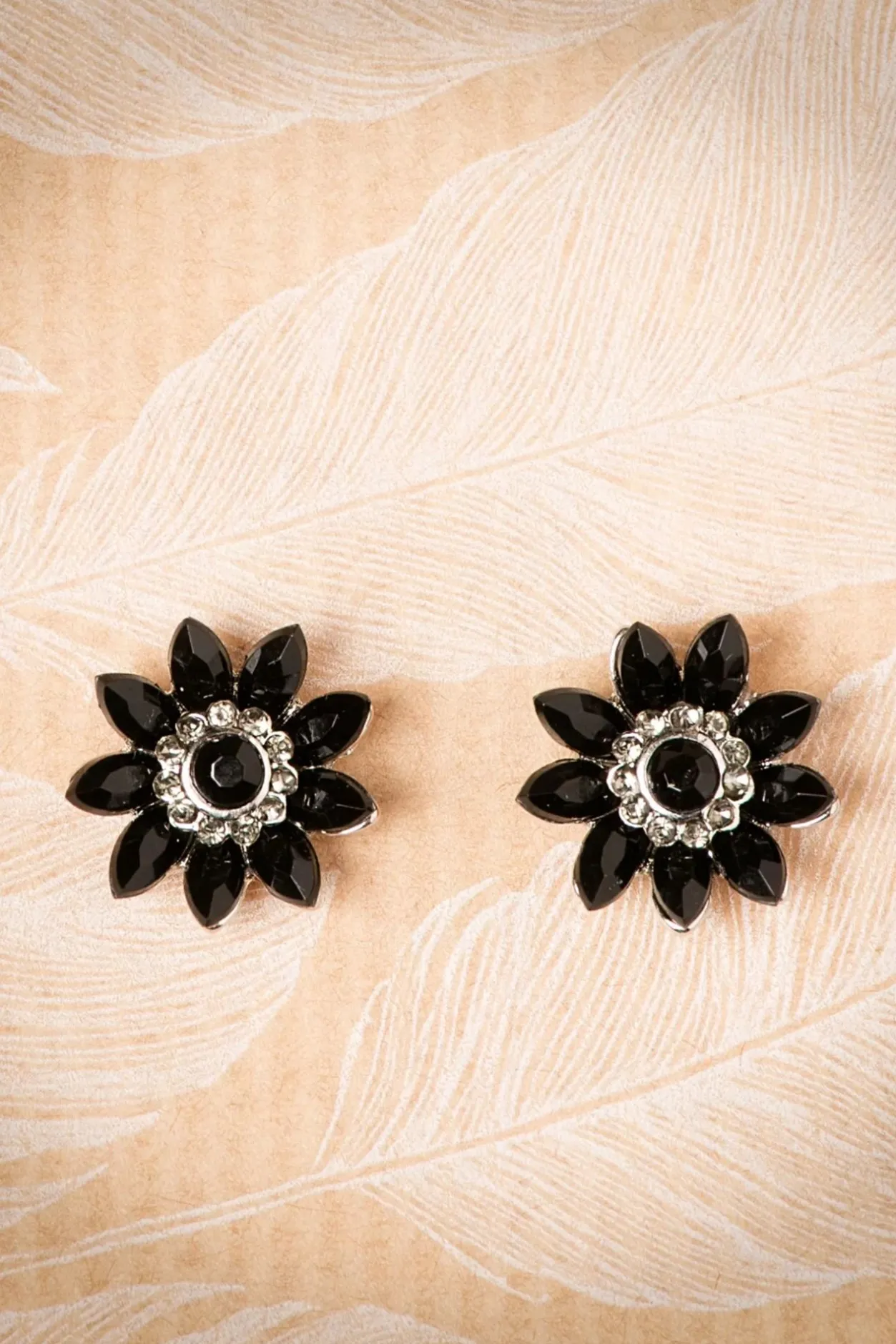 Lovely Audrey Jet Flower Stud Oorbellen In Zwart En Zilver>Vrouwen Sieraden