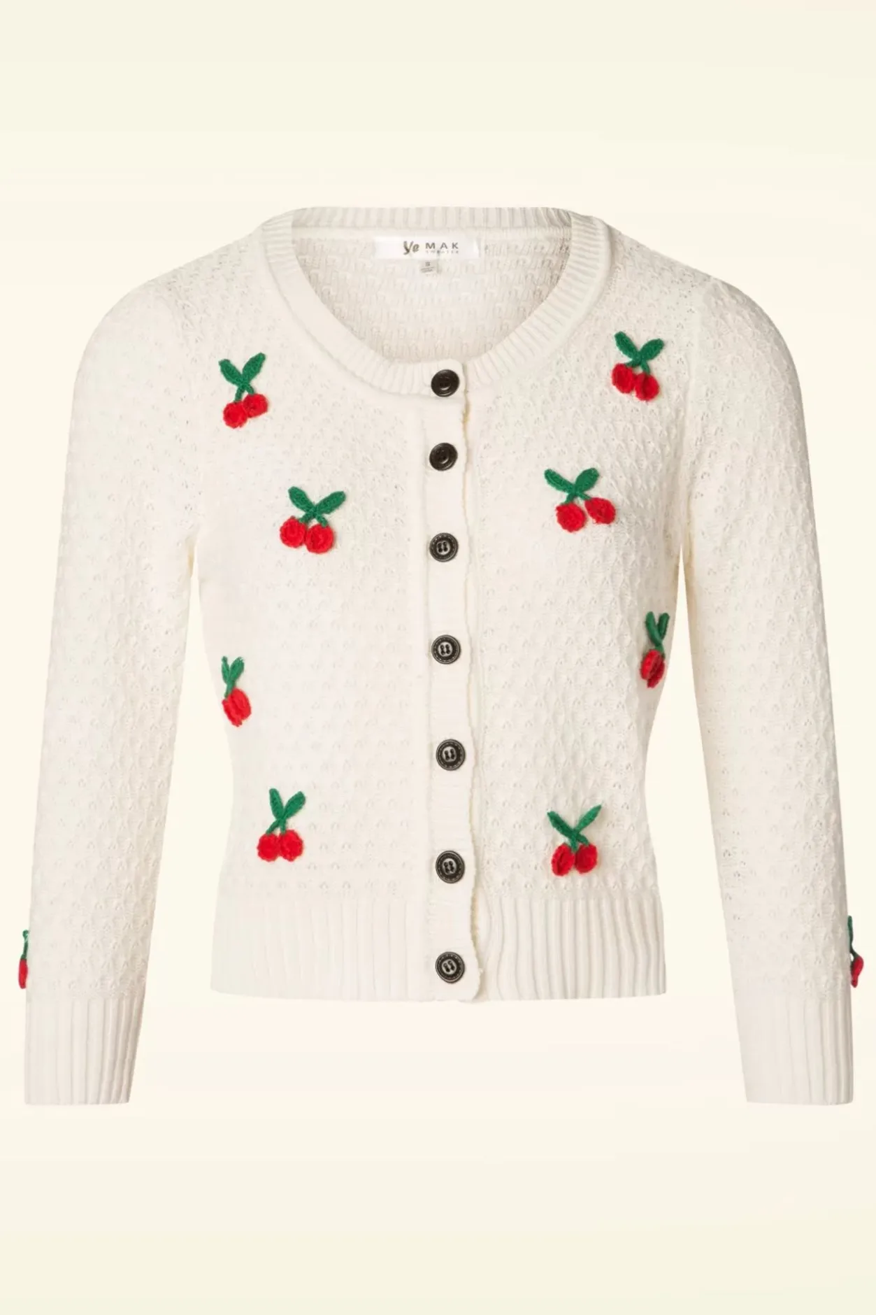 Deze 50S Jennie Cherry Cardigan In Ivory Is Te Leuk En Online In Nederland, Duitsland En Frankrijk Exclusief Verkrijgbaar Bij Topvintage! Vestjes Zijn Vaak Ondergewaardeerde Kledingstukken Maar Laten We Daar Eens Verandering In Brengen! Je Draagt Ze Open Of Gesloten En Zorgen Ervoor Dat Je De Rest Van Je Garderobe Ook Tijdens Koudere Dagen Kunt Dragen, Daar Verdienen Ze Toch Wel Wat Credits Voor?! Deze Retro Topper Heeft Een Klassieke Snit Met Een Ronde Halslijn, 3/4 Mouwen En Schattige Applicaties Van Rode Gehaakte Kersen. Uitgevoerd In Een Dikkere Maar Heerlijke Soepele En Stretchy, Fijn Gebreide Ivoorkleurige Katoen Met Een Subtiel Ruitpatroon. Jennie Verdient Echt Een Plaatsje In Jouw Kledingkast, Toch?