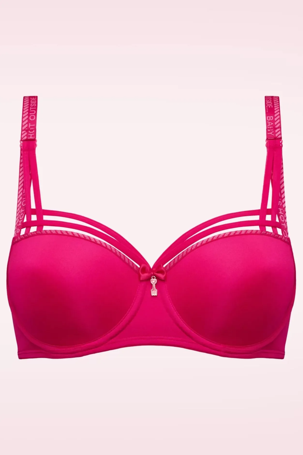 ‘Dare To Be Seen’ In Deze Balconette Bh! Uitgevoerd In Een Roodroze, Glanzende Microvezel Stof, Voorzien Van Het Iconische Lijnenspel Boven De Cups Die Je Rondingen Op Sublieme Wijze Omlijst! Marlies Heeft Zich Bij Het Ontwerpen Van Deze Bh Laten Inspireren Door De Glorieuze Notre Dame-Kathedraal. Als Ode Aan Haar ‘Gardenista’ Collectie Plaatste Ze Een Goudkleurige Tuinvork Tussen De Cups En Als Finishing Touch Heeft Ze De Woorden ”Baby It’s Hot Outside” Laten Weven In De Schouderbandjes.