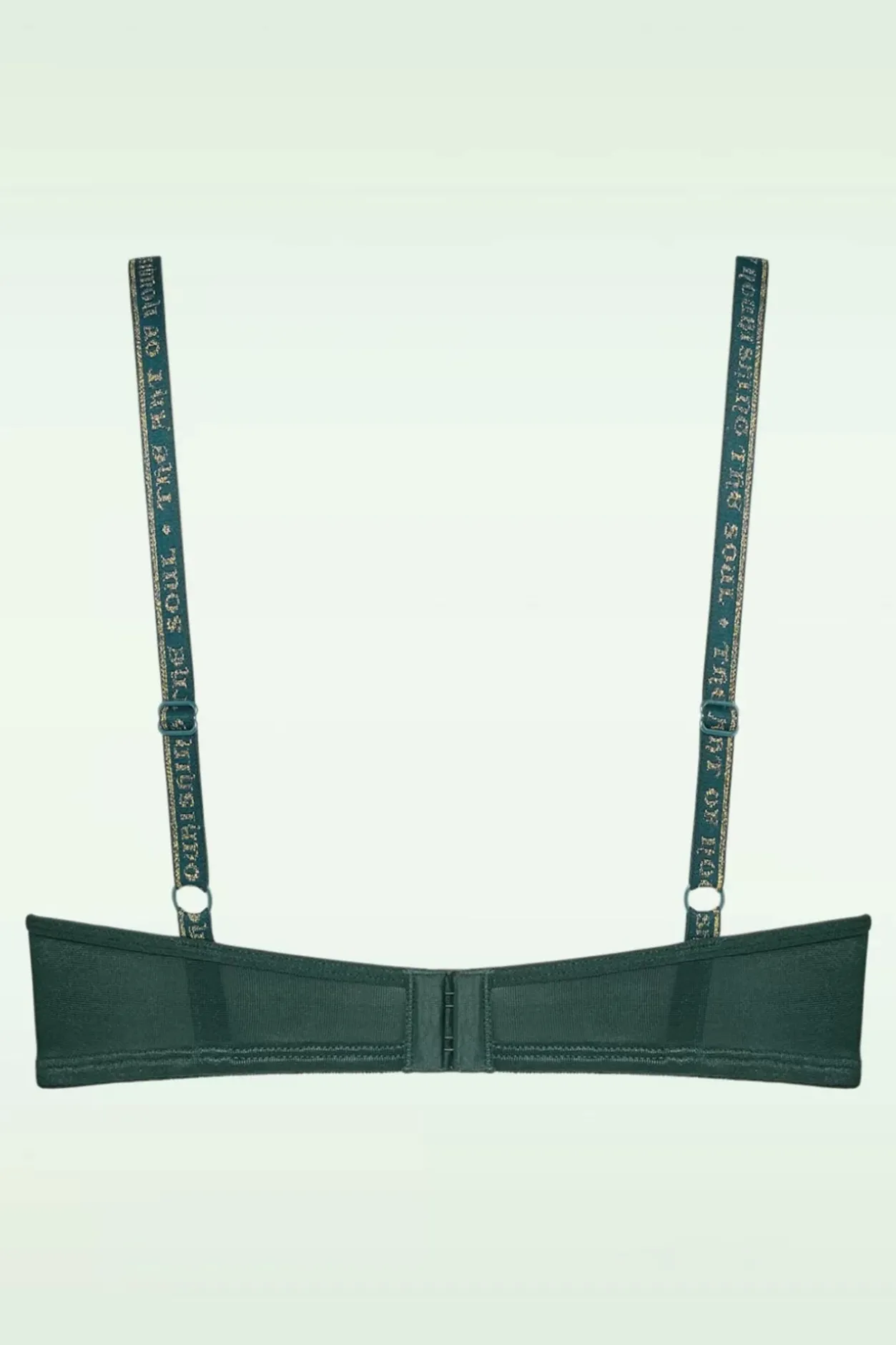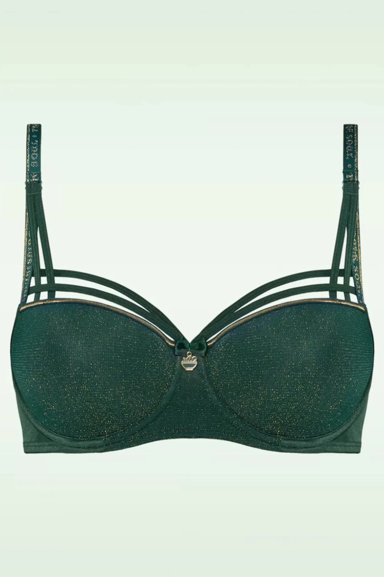 ‘Dare To Be Seen’ In Deze Dame De Paris Padded Balcony Bra In Green And Gold! Ze Is Uitgevoerd In Een Dennengroene Stof Met Een Subtiele Gouden Lurex Glitter. Het Prachtige Lijnenspel Boven De Cups Omlijst Je Rondingen Op Sublieme Wijze! Marlies Heeft Zich Bij Het Ontwerpen Van Deze Collectie Laten Inspireren Door De Glorieuze Notre Dame-Kathedraal, Een Tijdgenoot Van Hildegard Von Bingen. Als Ode Aan De Geneeskrachtige Kruiden Van De Non Plaatste Ze Een Goudkleurige Vijzel Tussen De Cups En Als Finishing Touch Heeft Ze De Woorden ”The Art Of Nourishing The Soul” Laten Weven In De Schouderbandjes.