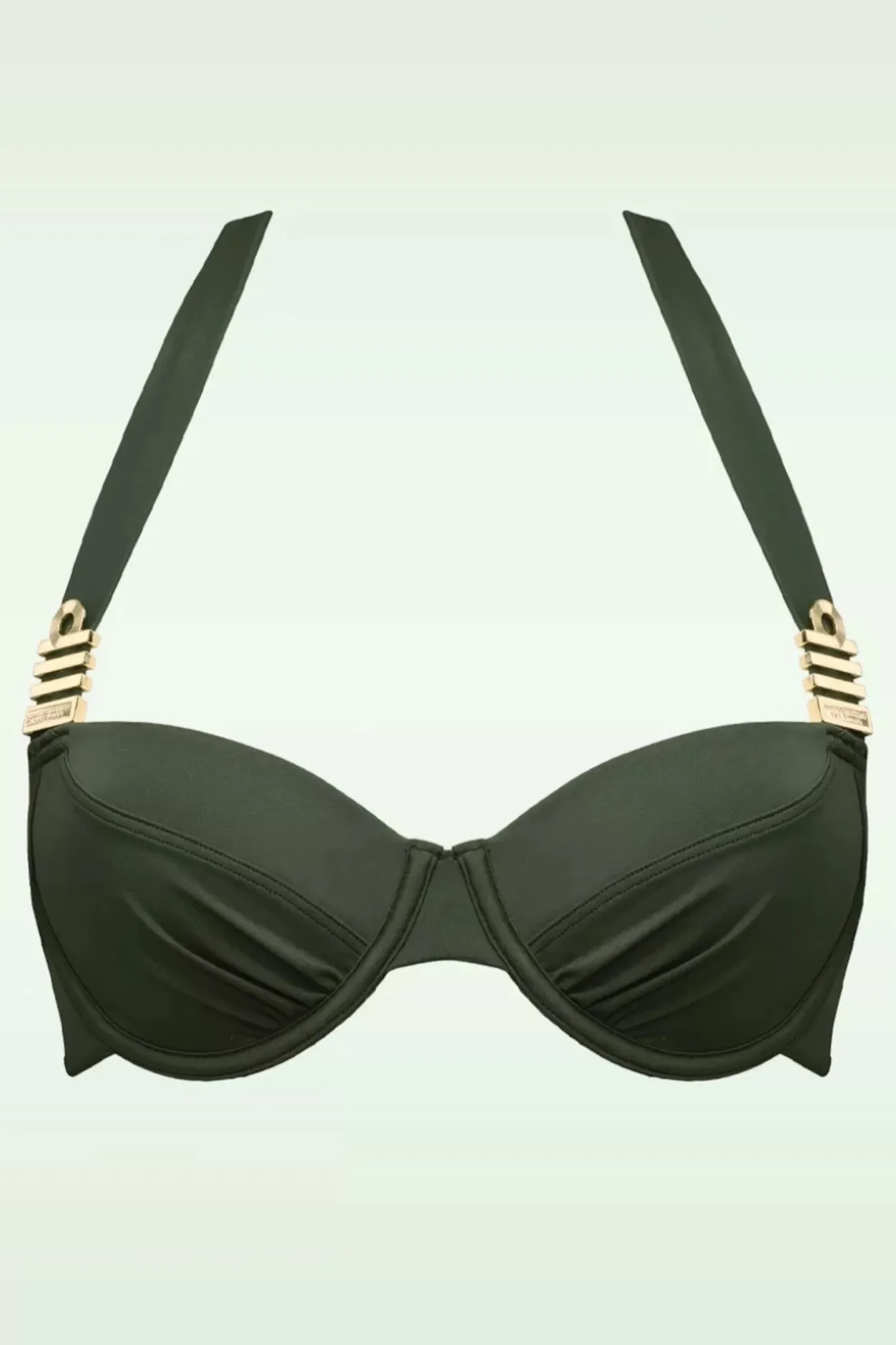 Zelfs De Meest Doorgewinterde Marinier Verliest Zijn Zelfbeheersing Wanneer Je Langsloopt In Deze Balconette Bikinitop, Want De Stevige Beugels En De Padded Cups Zorgen Niet Alleen Voor Extra Steun, Maar Geven Je Ook Een Droom Decolleté. Marlies Heeft Er Ook Voor Gezorgd Dat Je Rondingen Perfect Geaccentueerd Worden Door Strategisch Geplaatste Bandjes En Plooitjes… Oh La La! Uitgevoerd In Een Stevig Maar Toch Comfortabel, Gerecycled Stofje In Zeewiergroen Met Goudkleurige Maritieme Details Voor Een Rijke, Luxe Uitstraling. Op Deze Ontdekkingstocht, Ben Jij De Kapitein… Aye, Aye!