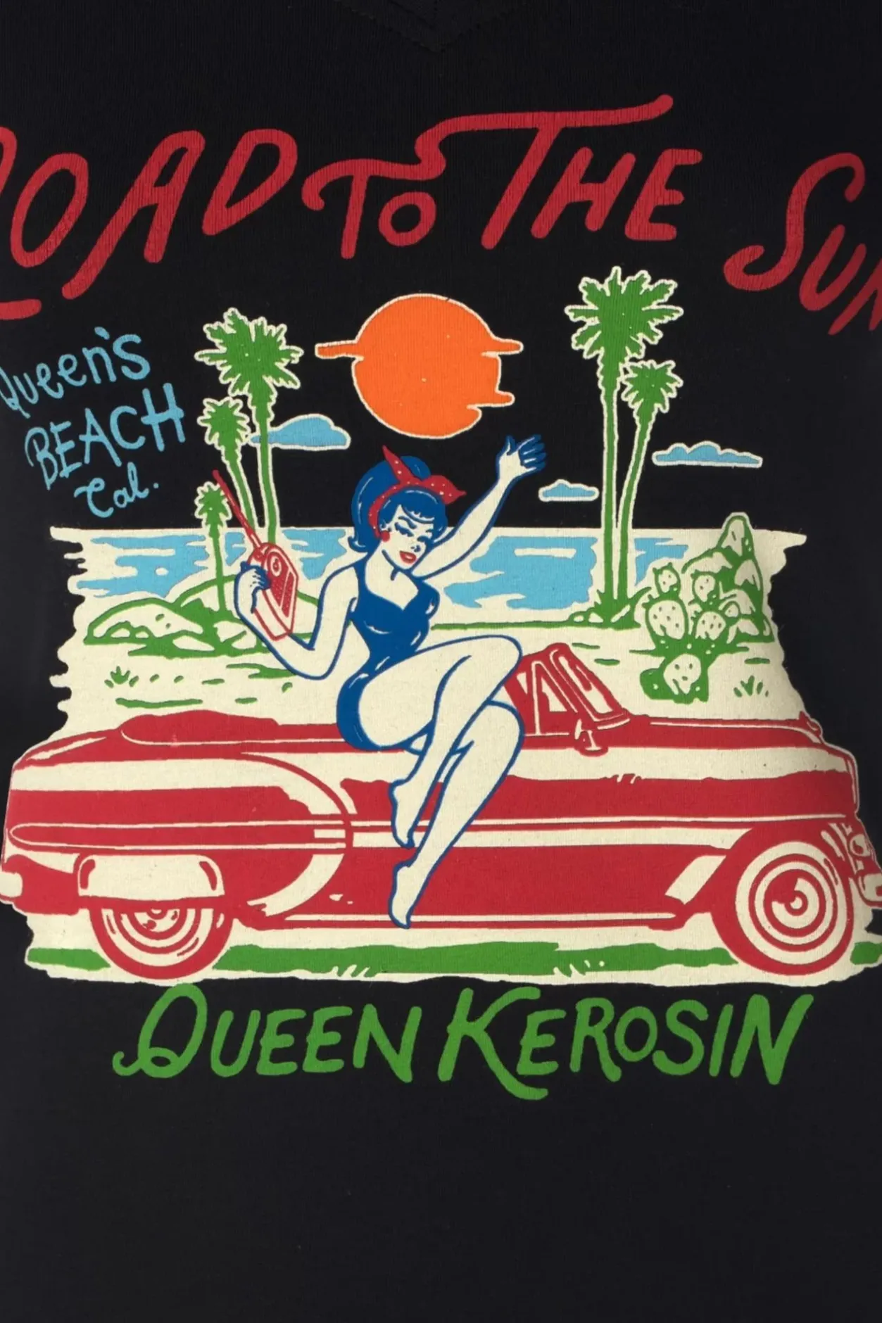 Nieuwe Lente/Zomercollectie ~ ”Let’s Take The Road To The Sun!” Dit T-Shirt Met Een Te Leuke Print Is Uitgevoerd In Een Heerlijk Zachte En Stretchy, Zwarte Katoenmix Die Een Genot Is Om Te Dragen.