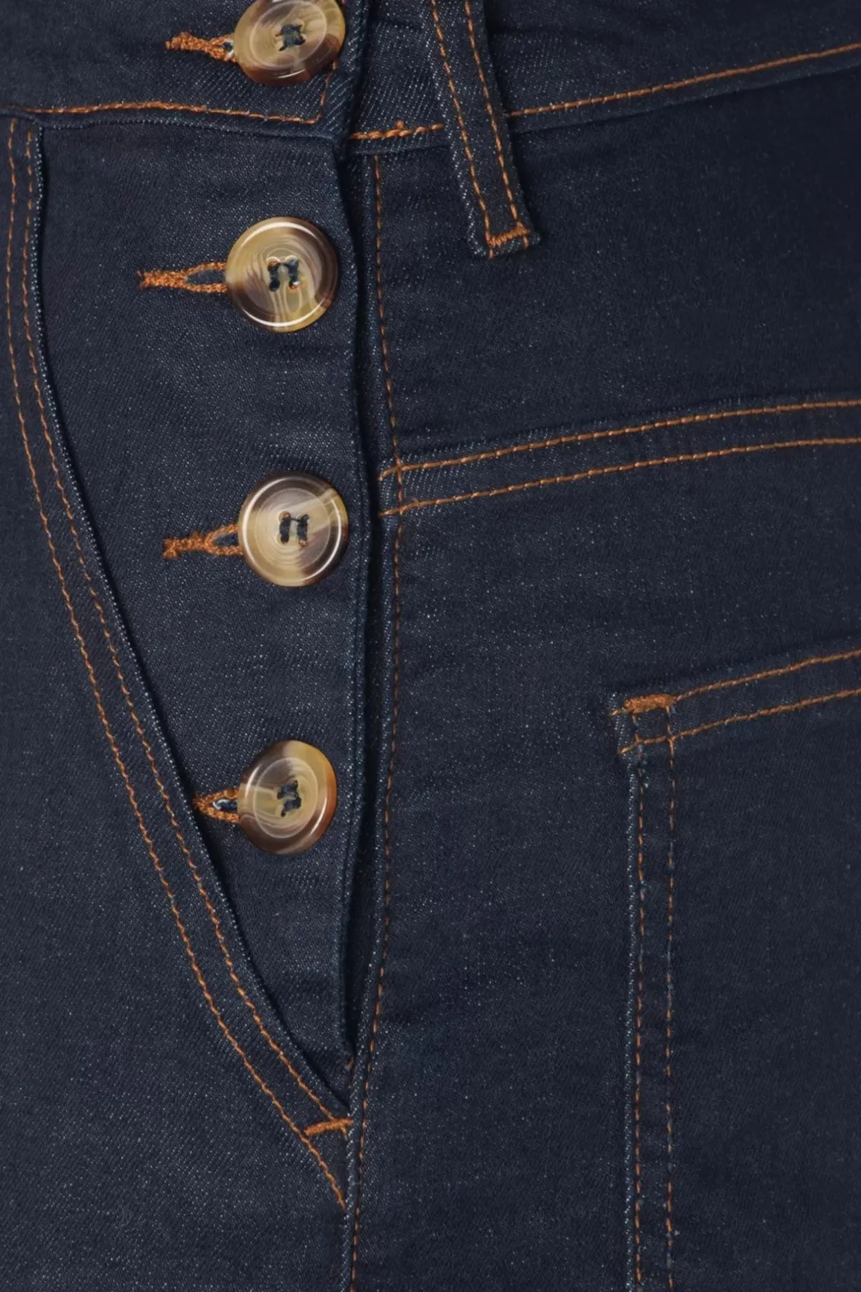 ”In The Right Denim, A Girl Can Conquer The World!” Voel Je Een Echte Stoere Chick In Deze Workwear Capri Denim! Ze Is Uitgevoerd In Een Stevige, Donkerblauwe Katoenmix Met Een Hele Lichte Stretch Voor Jarenlang Draagplezier.