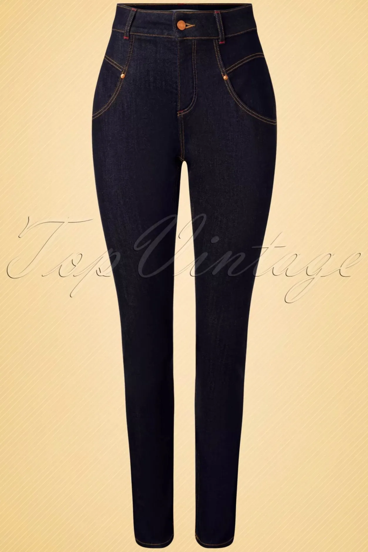 Ons Eigen Merk Rock-A-Booty Staat Bekend Om Haar ‘Unique Blue Dreams’… Deze 50S Doris Skinny Jeans In Dark Blue Is Zo’N Denim Droom Die Uitkomt! Skinny’s Zijn Soms Scary Maar Zodra Je Doris Aantrekt Weet Je Het Zeker: “This One Is A Keeper!” Ze Heeft Een Vrouwelijke Hoge Taille Die Dankzij Het Authentieke Gele En Rode Stikwerk Nog Beter Tot Haar Recht Komt, Steekzakjes Aan De Voorzijde, Zakjes Aan De Achterzijde En Loopt Uit In Slanke Aansluitende Skinny Pijpen Die Je Benen Eindeloos Doen Lijken. De Gehele Rock-A-Booty Collectie Is Van Een Hoogwaardige Kwaliteit, Zo Is Ook Deze Denim Beauty Uitgevoerd In Eenprachtige Stevige, Donkerblauwe Katoenmix (Stretcht Nauwelijks) Die Je Rondingen Perfect Volgt En Is Afgewerkt Met Koperkleurige Knopen Voor Die Authentieke Touch. Doris Is Een All-Time Klassieker Die Je Kunt Stylen Al Naar Gelang Je Mood, “Feeling Like A Pin-Up Honey, A Classy Vixen Or A Road Rocking Rockabilly? Doris Has Got Your Back!” En Wij Bedoelen ‘Back’ Letterlijk Want Niemand “Rocks Your Booty Like Doris Does”! 😉