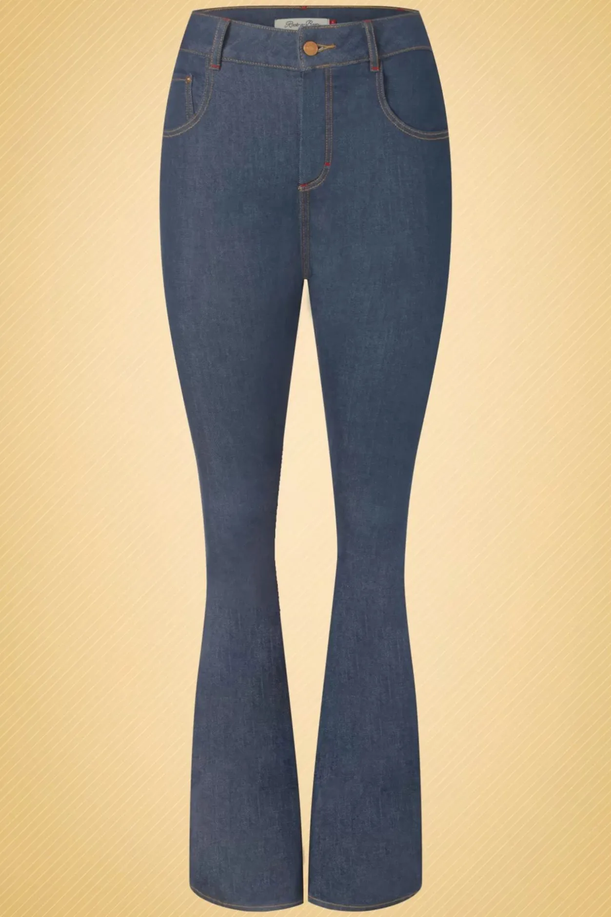 Ons Eigen Merk Rock-A-Booty Staat Bekend Om Haar ‘Unique Blue Dreams’… Deze 50S Rosa Jeans In Denim Blue Is Zo’N Denim Droom Die Uitkomt! Rose Heeft Een Vrouwelijke Hoge Taille, Steekzakjes Aan De Voorzijde, Zakjes Aan De Achterzijde En Wijd Uitlopende Pijpen Die Je Benen Eindeloos Lang Doen Lijken. De Gehele Rock-A-Booty Collectie Is Van Een Hoogwaardige Kwaliteit, Zo Is Ook Deze Denim Beauty Uitgevoerd In Een Prachtige Stevige Denimblauwe Katoenmix (Stretcht Nauwelijks) Die Je Rondingen Perfect Volgt En Is Afgewerkt Met Koperkleurige Knopen En Donkergele Stiksels Voor Die Authentieke Touch. Rosa Has Got Your Back!” En Wij Bedoelen ‘Back’ Letterlijk Want Niemand “Rocks Your Booty Like Rosa Does”! 😉