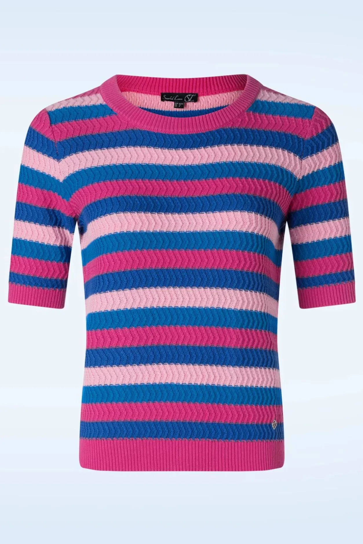 ”All We Knit Is Love!” Iris Is Uitgevoerd In Een Grof Gebreide En Stretchy, 100% Katoen En Voorzien Van Een Fantastische Kleurenmix Van Blauw En Roze.