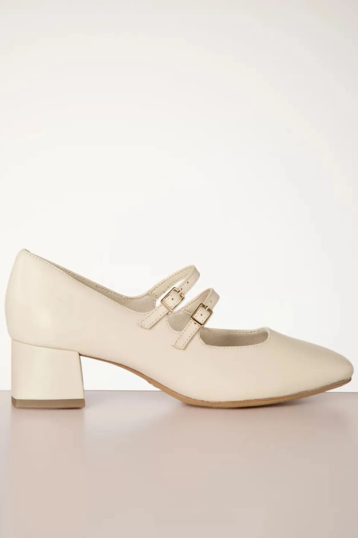 ”Feeling Like A Mod-Ern Fashionista!” Mary Jane Stijl Pumps Uitgevoerd In Hoogwaardig Crèmekleurig Leder Met Verstelbare Bandjes Over De Wreef En Een Sixties Stijl Hakje.