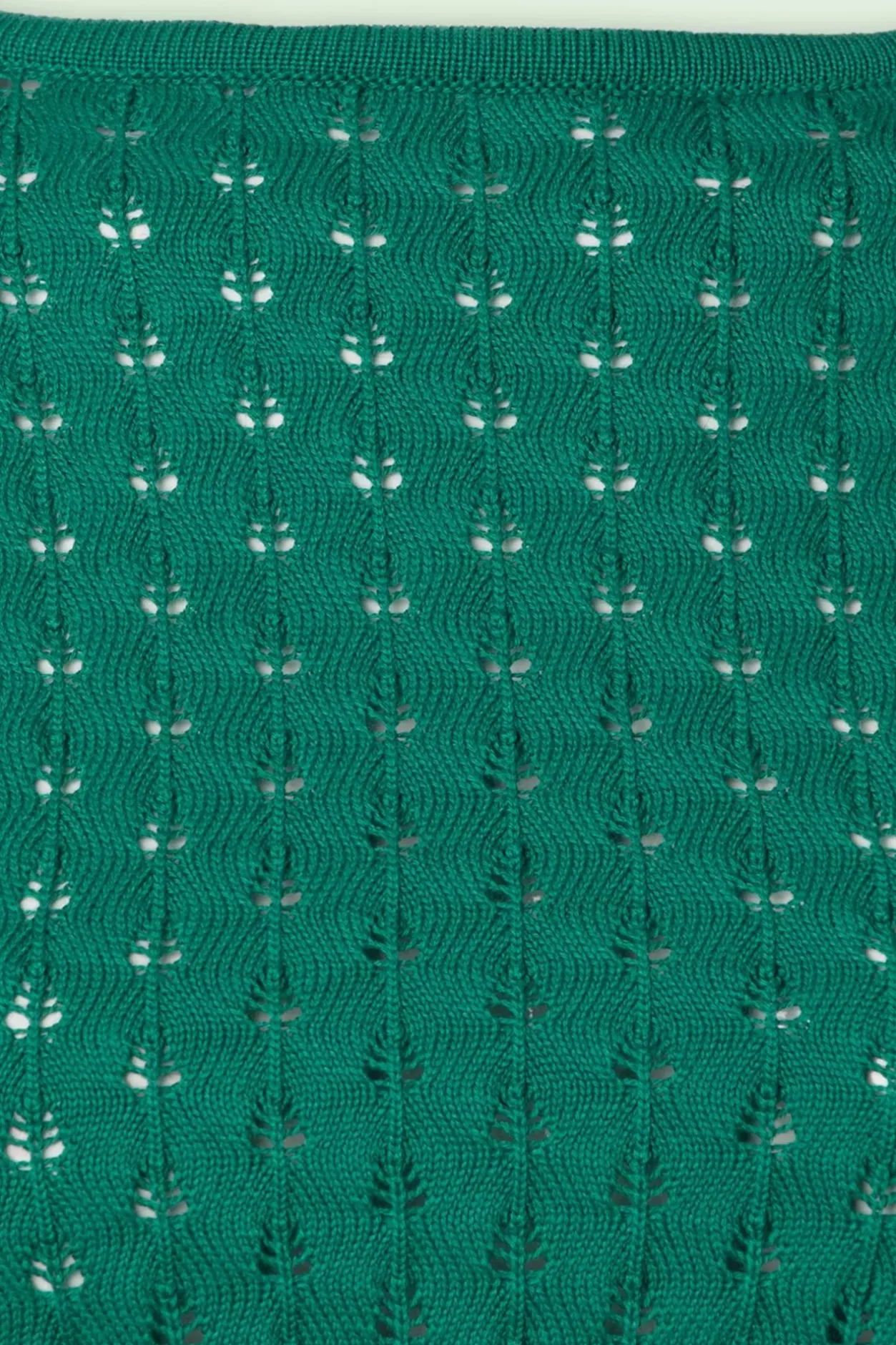 Dezeella Top Kun Je Eindeloos Combineren! Uitgevoerd In Een Stretchy, Fijngebreide, Smaragdgroene Katoen-/Viscosemix Met Een Opengewerkt Patroon Voor Eenmooie Pasvorm. Waar Je Haar Ook Mee Combineert, Ze Is Altijd De Juistekeuze!