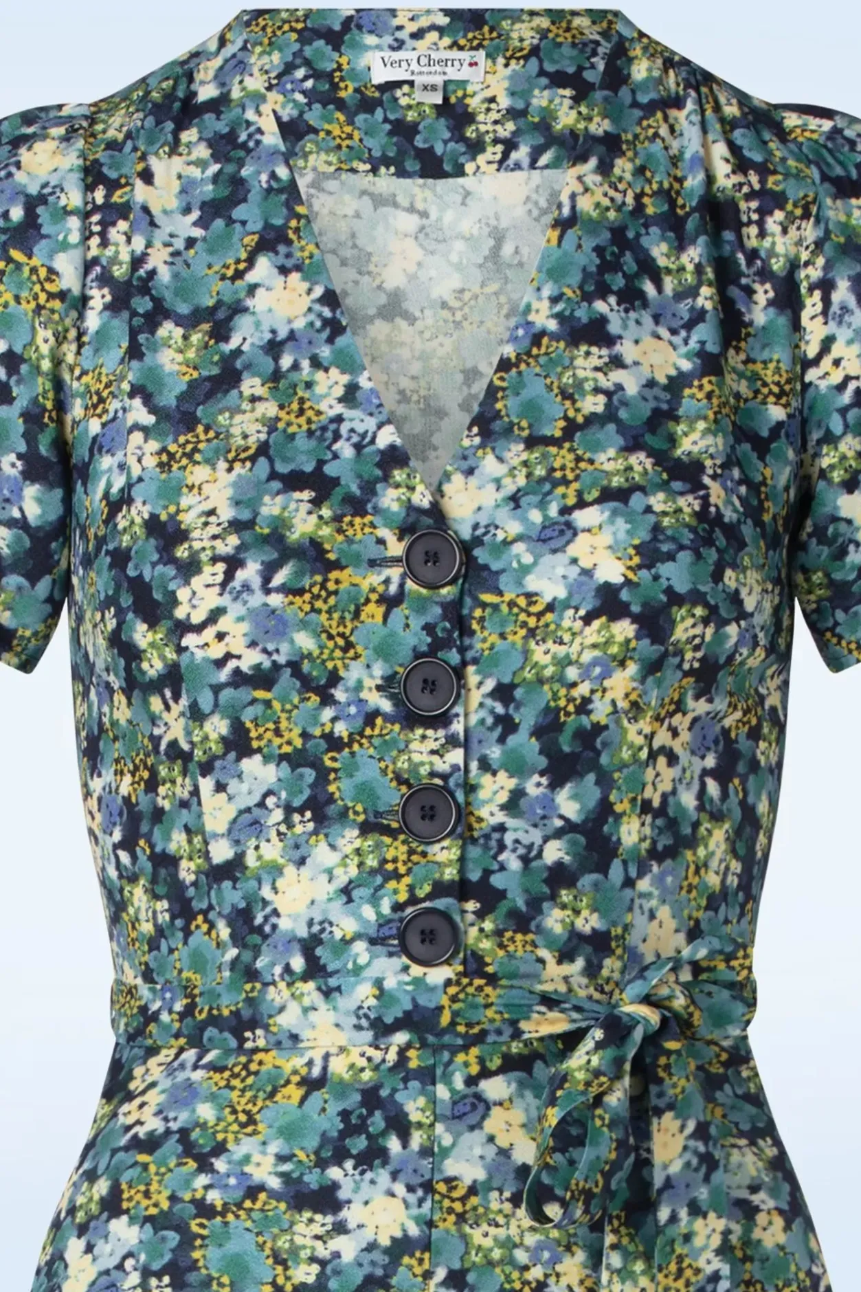 Voeg Wat ‘Vintage Flair’ Toe Aan Je Zomergarderobe Met Deze Magnolia My Fair Lady Dress In Blue! Ze Heeft Een V-Halslijn, Korte Pofmouwen En Een Reeks Grote Knopen. Het Striklint Accentueert Je Taille Voor Een Super Vrouwelijk Silhouet. Uitgevoerd In Soepel En Luchtig, Donkerblauw Viscose (Stretcht Niet) Voorzien Van Een Lieflijke, Schilderachtige Bloemenprint. ”I Feel Pretty, Oh, So Pretty, I Feel Pretty And Witty And Bright!”
