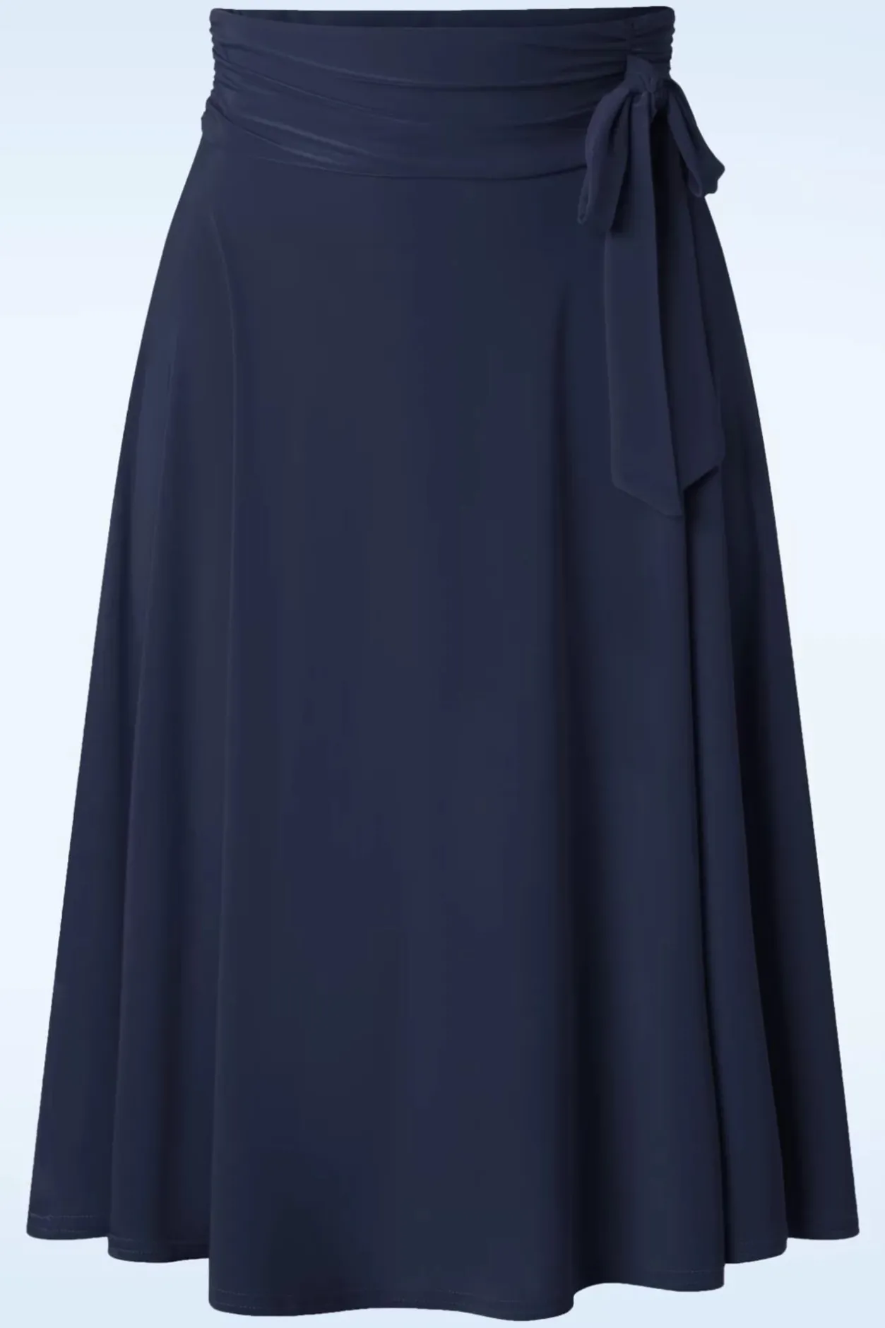 Dagje Kantoor Of Een Avondje Uit… Deze Aliyah Swing Skirt In Navy Is Jouw Sidekick! En Dankzij Haar Classy En Sophisticated Uitstraling Maar Ook Héérlijk Draagcomfort Geschikt Voor Elke Gelegenheid ;-). Deze Beauty Wordt Hoog In De Taille Gedragen Waardoor Je Een Prachtig Zandloper Figuur Krijgt, Oh La La. Uitgevoerd In Een Soepel Vallende, Stretchy, Glanzende, Navyblauwe Slinky Stof Die Elegant Met Je Mee Beweegt. All Day, Every Day, Aliyah All The Way!
