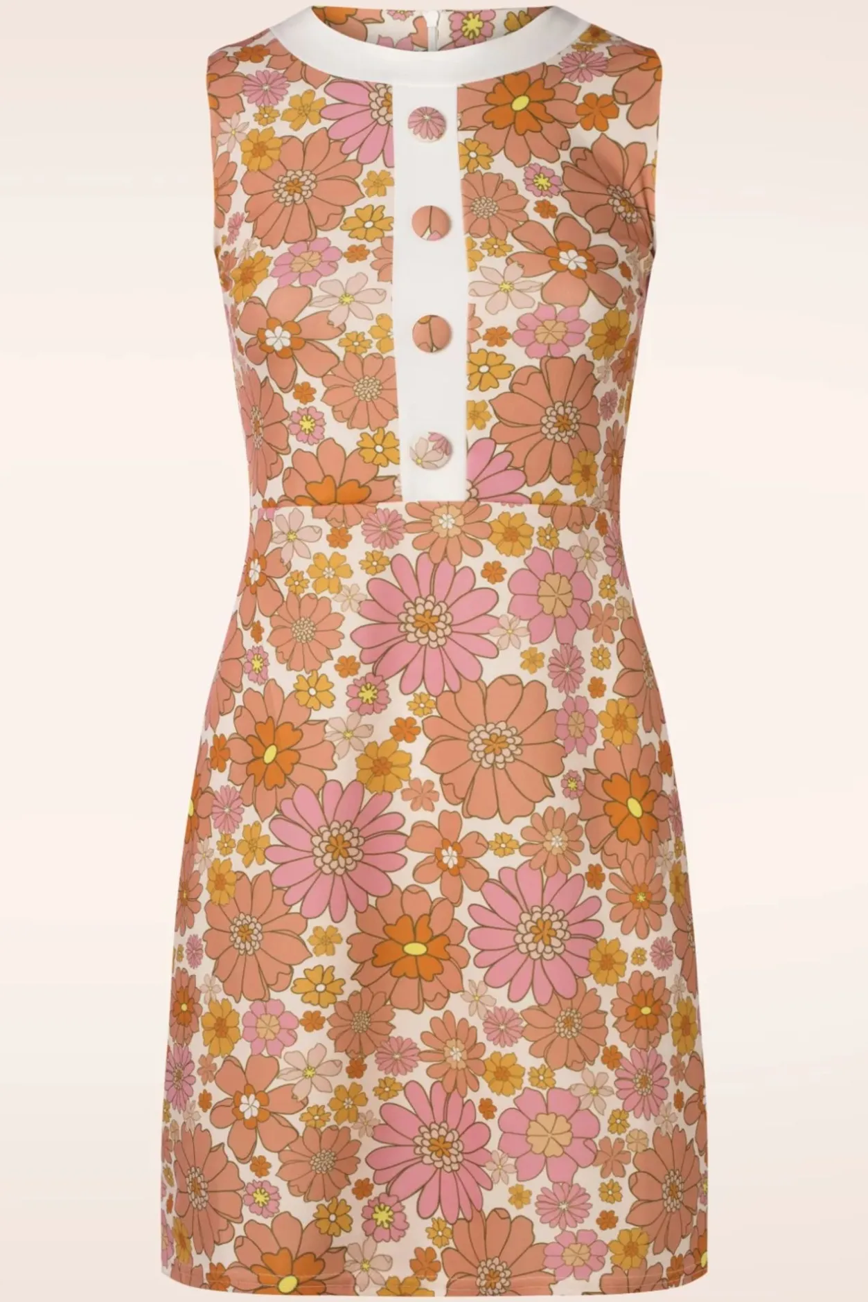 Nieuwe Collectie ~ ”Time To Move And Groove!!” Donna Heeft Een Hoge Halslijn En Is Uitgevoerd In Een Stretchy En Comfortabel Crêpe-Achtig Stofje Met Een Retro Bloemen Print In Roze En Oranje Tinten.