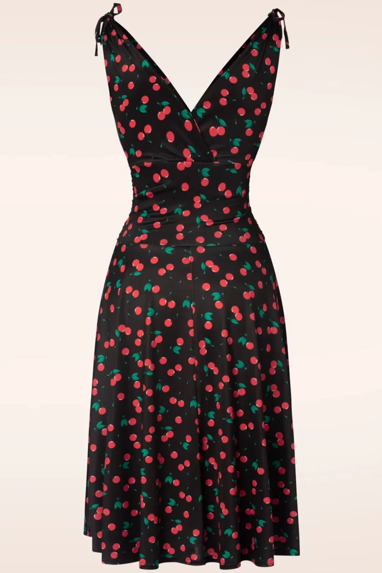 Nieuwe Collectie ~ In Deze Grecian Jurk Blijf Je Niet Onopgemerkt! De Top Heeft Zowel Aan De Voor- Als Achterzijde Een Diepe V Met Mooie Overslag Waardoor Je Een Sexy Decolleté Laat Zien, Oh La La! De Licht Geplooide Cups Lopen Door In Brede Schouderbandjes Met Een Speels Strikdetail Op De Schouder. Uitgevoerd In Een Glad, Soepel En Stretchy, Zwart Slinky Stofje Dat Bezaaid Is Met Sappige Kersjes En Heerlijk Draagt. ”You’Re The Cherry On Top!”