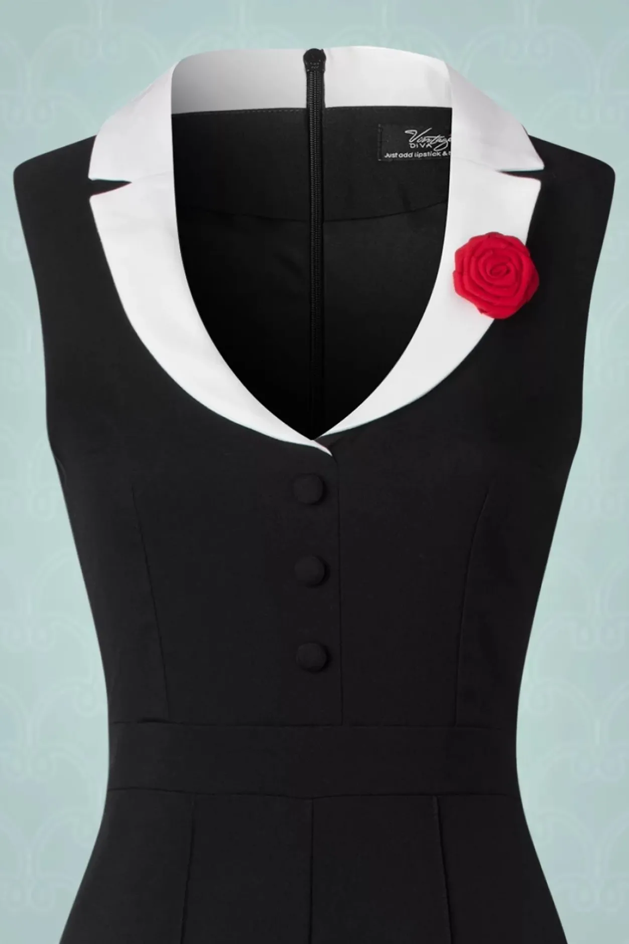 Het Is Gewoon Een Feit Dat Jumpsuits Nooit Teleurstellen, Ze Zijn Echte Klassiekers, Zo Ook The Luchia Jumpsuit In Black! Onze Eigen In-House Ontwerpers Geven Met Luchia Een Zomerse Adaptie Van Het Marlène Dietrich Pak! Dit Seizoen Hebben Onze Eigen In-House Ontwerpers Zich Laten Inspireren Door Het Thema; ‘Love Is Like A Wild Flower!’ Wilde Bloemen Zijn Een Assemblage Van Verschillende Gevoelens En Texturen, Net Als Deze Nieuwe Lente/Zomer Collectie! De Aansluitende Top In Heeft Een V-Halslijn Met Contrasterende Witte Kraag, ‘Faux’ Knopen Op Het Lijfje En Een Afneembare Rode Rooscorsage Die Je Kunt Plaatsen Waar Je Wilt. De Zwarte, Lange Wijde Pijpen En Verticale Pintuck Naad Laten Je Benen Eindeloos Lang Lijken. De Stevige, High Quality Zwarte Stof Met Een Hele Lichte Stretch Is Bovendien Een Genot Om Te Dragen! Steel De Show In Deze Beauty En Zie Er Net Zo ‘Unforgettable’ Uit Als Marlène Herself!