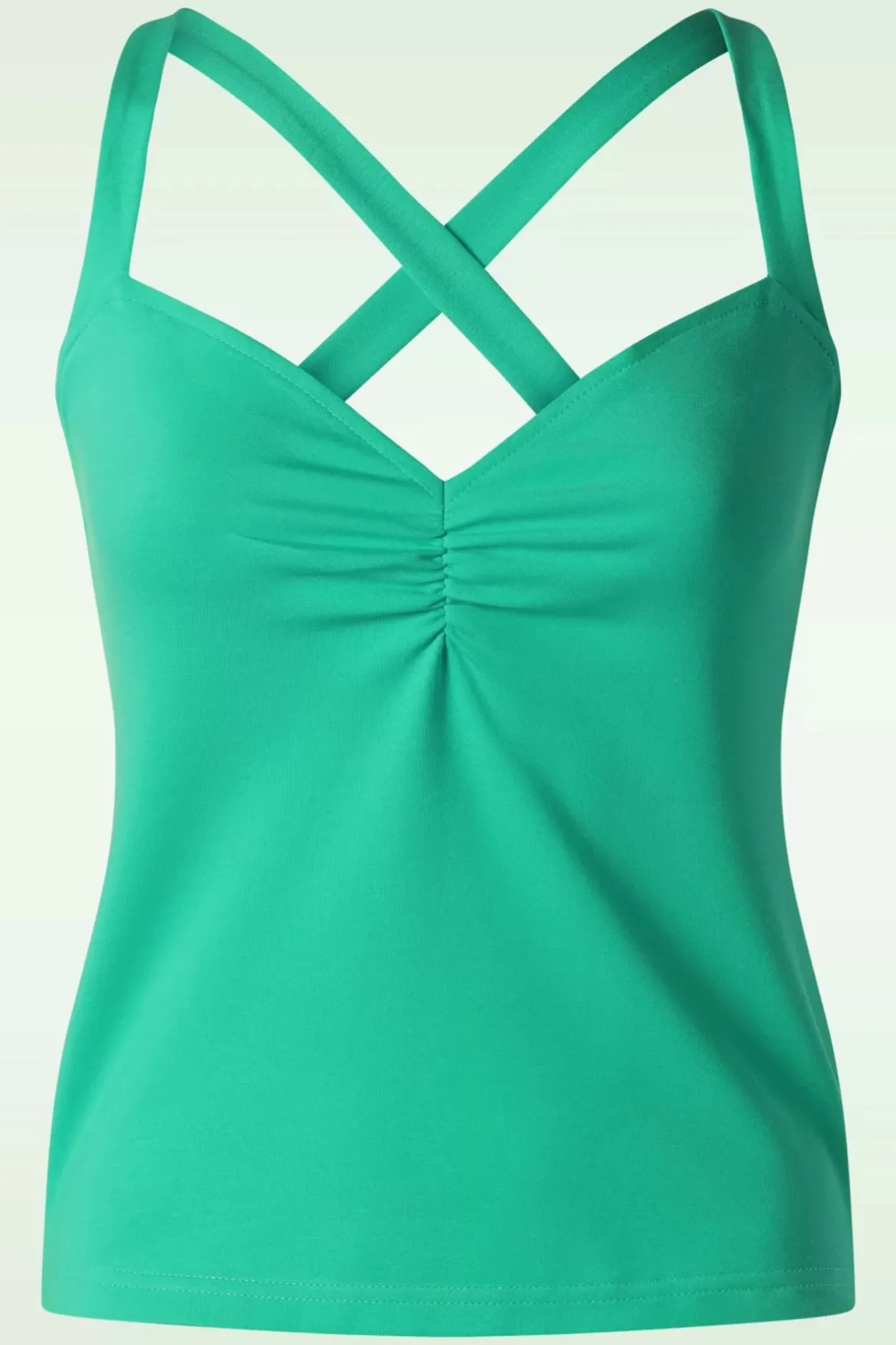 Ga Voor Een Oogverblindende Look Met Deze Top! Ze Is Voorzien Van Speelse Plooitjes En Gekruiste Schouderbandjes. Uitgevoerd In Een Super Comfortabele En Stretchy, Turquoise Viscosemix Die Heerlijk Draagt.