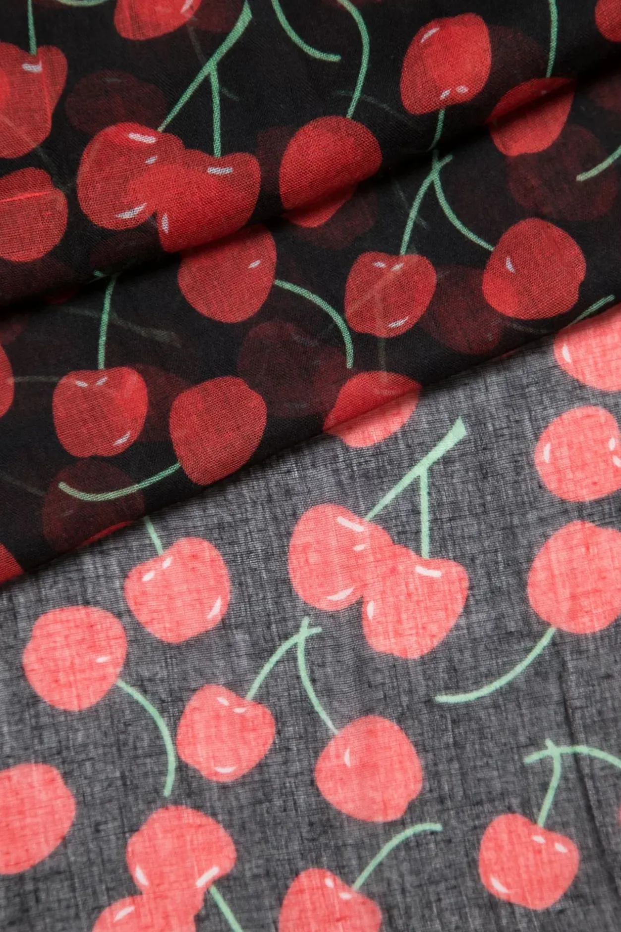 Deze Shawl Is Als De Kers Op De Taart! Uitgevoerd In Zwart, Zacht Viscose Met Een Sappige Rode Kersenprint.