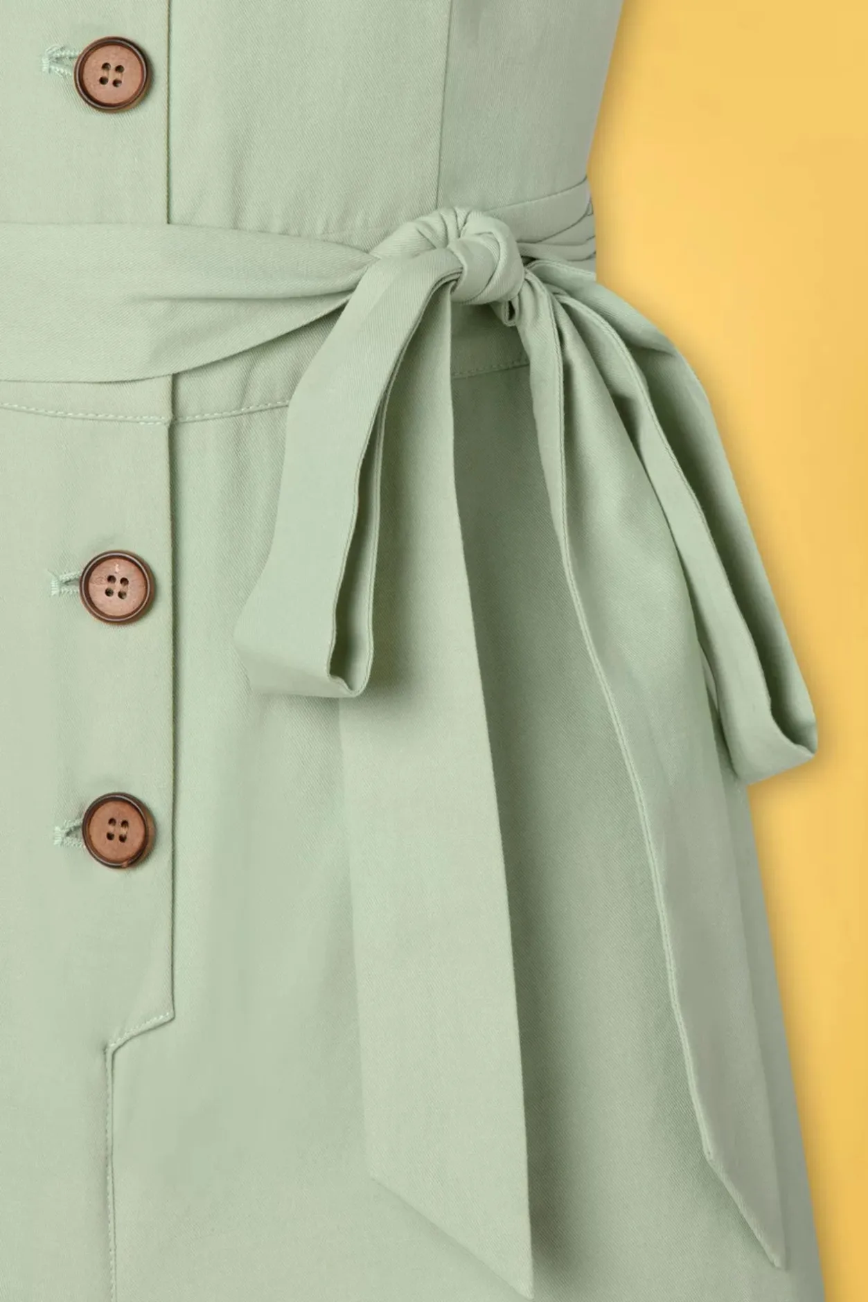Deze Adventure Ahead Jumpsuit In Green Wil Je Het Liefst Iedere Dag Wel Dragen! Ze Heeft Korte Mouwen Met Omslagjes, Een V-Hals Met Reverskraag, Een Afneembare Strikband In De Taille En Een Bruine Houten Knopenrij Aan De Voorzijde. De Lange, Wijde Pijpen Met Omslagjes En Handige Steekzakken Zijn Bovendien Super Flatterend Voor Ieder Lichaamstype. Uitgevoerd In Stevig Maar Luchtig, Pastelgroen Katoen (Stretcht Niet) Dat Heerlijk Draagt Als De Temperaturen Weer Stijgen. Deze Beauty Zal Een Onmisbaar Item Worden Dit Seizoen!